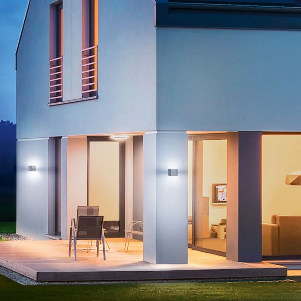 Intelligent utendørs LED-vegglampe L 840 SC med iHF-sensor, kan styres via Bluetooth og app Det elegante utseendet til sensorutendørs LED-vegglampen L 840 SC fra serien.lighting fra STEINEL Connected Lighting fremhever enhver husfasade. Og den intelligente teknologien som skjuler seg bak den enkle fasaden, er ikke til å kjenne igjen ved første øyekast. Den utendørs LED-vegglampen L 840 SC har energieffektive lysdioder som spotlighter et varmhvitt lys både oppover og nedover. Teknologien er innrammet av UV-bestandig plast, som er elegant utført i antrasitt og passer perfekt sammen med de hvite diffusorene. Den usynlige iHF-sensoren er ikke synlig fra utsiden. Bevegelsessensoren har en rekkevidde på 5 meter og registrerer bare menneskelige bevegelsesmønstre. Alle andre bevegelser, som for eksempel små dyr eller løv som rasler i vinden, ignoreres. Til dette formålet sender iHF-sensoren ut elektromagnetiske bølger og mottar ekkoet av disse. Hvis en person beveger seg innenfor registreringsområdet, gjenkjennes denne ekkoendringen, og kommandoen gis til å slå på lyset. Alle funksjonene til utendørs LED-vegglampen L 840 SC kan styres via en smarttelefon eller et nettbrett. Dette gjøres via en Bluetooth-tilkobling og ved hjelp av den gratis appen STEINEL Smart Fjernkontroll, som er tilgjengelig for Android eller iOS. Denne appen kan også brukes til tilleggsfunksjoner, for eksempel gruppekobling av flere lamper, en utvidet rekkeviddeinnstilling eller et justerbart hovedlys- og nattlysnivå – Konfigurasjon utelukkende med Steinel Connect-appen – Myk lysstart – Kontinuerlig lysfunksjon (opptil fire timer) – Nattlysfunksjon – Skumringsinnstilling (trinnløs fra ca. 2 til 2 000 lux) – Registreringsvinkel 160° – Inklusive krypsensor – Radial / tangentiell rekkevidde: 5 m (35 m²) – Tidsinnstilling: 5 sekunder til 15 minutter – Slagfasthet: IK03 – Omgivelsestemperatur -20° til +40° – Monteringshøyde maks. 2,5 m
