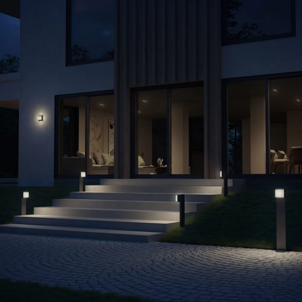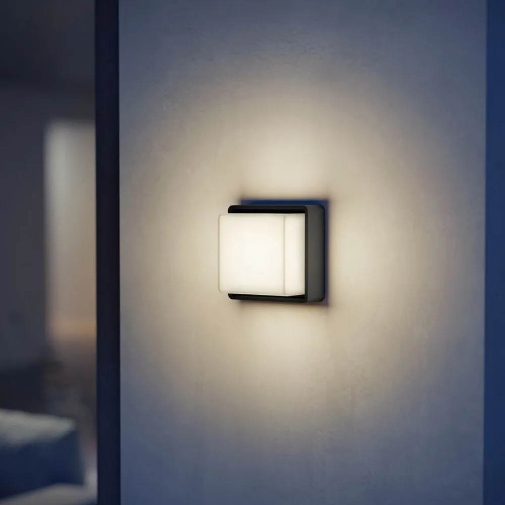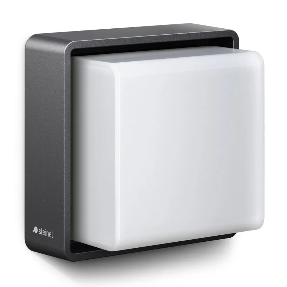 Kubeformet L 845 C LED utendørs vegglampe, styrbar via app L 845 C LED utendørs vegglampe er laget av robust aluminium og plast og er tilgjengelig i antrasitt og hvit. På grunn av den subtile designen smelter den enkelt inn i ulike uteområder og er egnet for å lyse opp inngangspartiet, balkongen eller terrassen. Det varme lyset skaper også en hyggelig atmosfære. Utelyset kan enkelt settes opp og styres via Bluetooth Mesh og STEINEL Connect-appen. – grunnleggende lys og mykt lys startfunksjon (10 – 100%) – dimmes hovedlys (10 – 100%) – med Bluetooth mesh funksjon – kontrollerbar med STEINEL Connect app