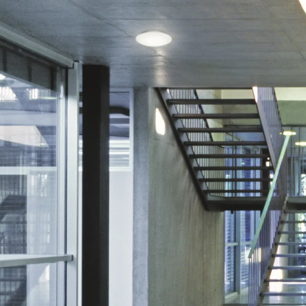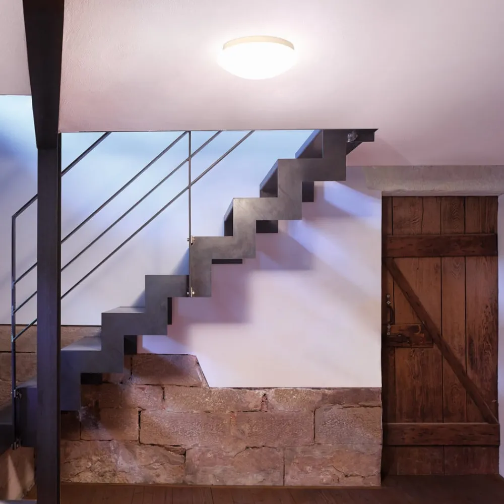 RS Pro P3 S LED-taklampe med høyfrekvent sensor og nødlysfunksjon RS Pro P3 S LED-taklampe fra Steinel er med sitt attraktive design og høye effektivitet den perfekte sensorlampen for korridorer eller trappeoppganger. Den kan kobles sammen med opptil 9 andre lamper via kabel. Tidløs design og enkel installasjon kombineres med banebrytende teknologi og maksimal effektivitet. Armaturen er utstyrt med nødlys i henhold til DIN EN 60598-2-22, som gir lys i 3 timer ved strømbrudd – med høyfrekvent bevegelsesdetektor med en deteksjonsvinkel på 360° – skumringsinnstilling 2 – 2000 lux – justerbar lysvarighet fra 5 sekunder til 15 minutter – med omgivelseslysfunksjon – justerbar 10 minutter/30 minutter eller hele natten – egnet for omgivelsestemperaturer fra -10 til 30 °C – maksimal monteringshøyde 4 meter