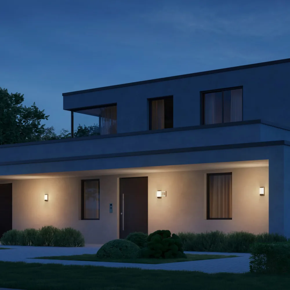 LED-husnummerlampe L 270 digi SC med integrert infrarød sensor LED-husnummerlampen L270 digi SC imponerer med sin moderne design og diskrete fargevalg i antrasitt og hvitt, noe som gjør den egnet for bruk i mange ulike miljøer. Den innebygde infrarøde sensoren registrerer bevegelse innenfor en radius på 8 meter og slår automatisk på det behagelige, varme lyset. Med den praktiske Bluetooth mesh-standardfunksjonen kan vegglampen kobles sammen med andre lamper i serien på et øyeblikk. Styres via STEINEL Connect-appen – Dimbar via appen – Inkluderer utskiftbare, opplyste husnummerpaneler