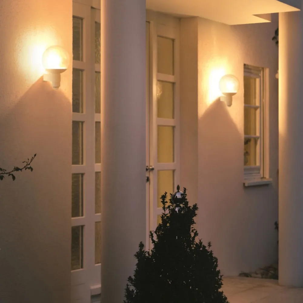 L 400 S: Sensor utendørs veggarmatur med sfærisk skjerm i krystallglassUtendørs veggarmatur L 400 S med bevegelsesdetektor avgir et fascinerende lys som utstråler modernitet og stil selv når den ikke er tent, og som passer til mange fasadedesign. I tillegg briljerer utendørsarmaturen med en funksjonalitet uten sidestykke. Bevegelsessensoren på 240° lar ingen ting slippe unna. Deteksjonsområdet har en rekkevidde på én til tolv meter, som kan reduseres til 1 m ved hjelp av et deksel. Det medfølgende dekselet kan skjæres til etter eget ønske. Tidsinnstillingen kan varieres fra 10 sekunder til 15 minutter. Ved justering av lysstyrken er innstillingsområdet mellom 0 % og 50 %. Det håndblåste krystallglasset skaper en spesielt effektfull lysatmosfære. Rammen er laget av værbestandig plast i robust design. Med kapslingsklasse IP44 er armaturen også rustet til å tåle tøffere værforhold. – 180° åpningsvinkel- Sensorsystem: 5 deteksjonsnivåer med 276 koblingssoner- Skumringsinnstilling: 2 – 2 000 lux- Monteringshøyde maks. 6 m