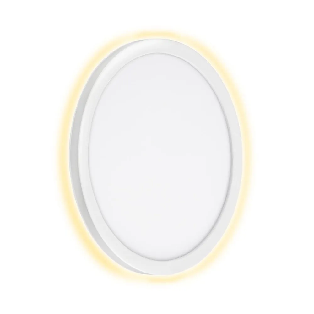Rund utendørs vegglampe Nizza med bakgrunnsbelysningseffekt, inkludert husnummersett Den nøytrale designen til den flate, runde utendørs vegglampen Nizza i hvit plast harmonerer med nesten alle omgivelser. Den kan også brukes som husnummerlampe takket være det medfølgende husnummersettet som kan klistres på. LED-lampene avgir universalhvitt lys ikke bare foran, men også bak, noe som skaper en attraktiv lysring på veggen – Kapslingsgrad: IP44