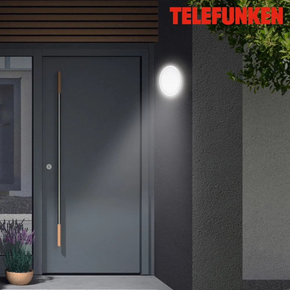 Telefunken Utendørs vegglampe Nizza, Ø 28 cm, hvit, 4 000K| Led-Utendørs