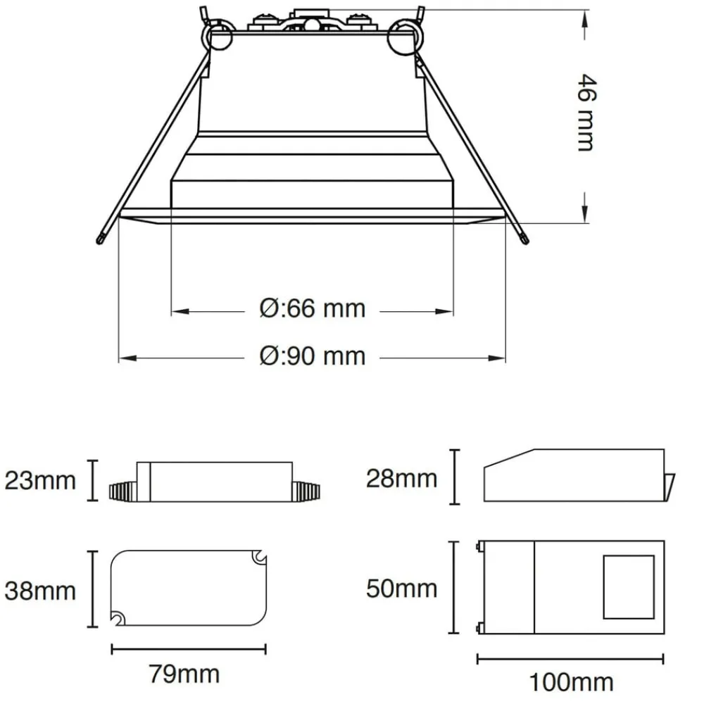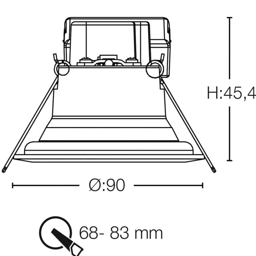 – Kan monteres i takåpninger med Ø 6,8 til 8,3 cm – Utmerket fargegjengivelse (CRI 98) – Utstrålingsvinkel 36° – Kan svinges 360° til 30° – Kapslingsgrad: IP44 – Omgivelsestemperatur under drift: – 10 °C til + 45 °C – Inkluderer forkoblingsutstyr (dimbar 1% til 100% via faseavbrytelse)