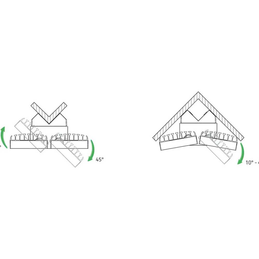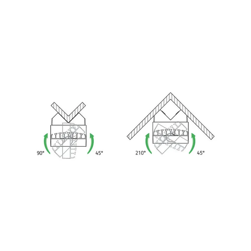 Hjørnebraketten 10 gjør det mulig å feste Luksa-spotlights og Luksa bevegelsessensorer til rettvinklede vegghjørner. Hjørnebraketten er egnet for både innvendig og utvendig hjørnemontering.