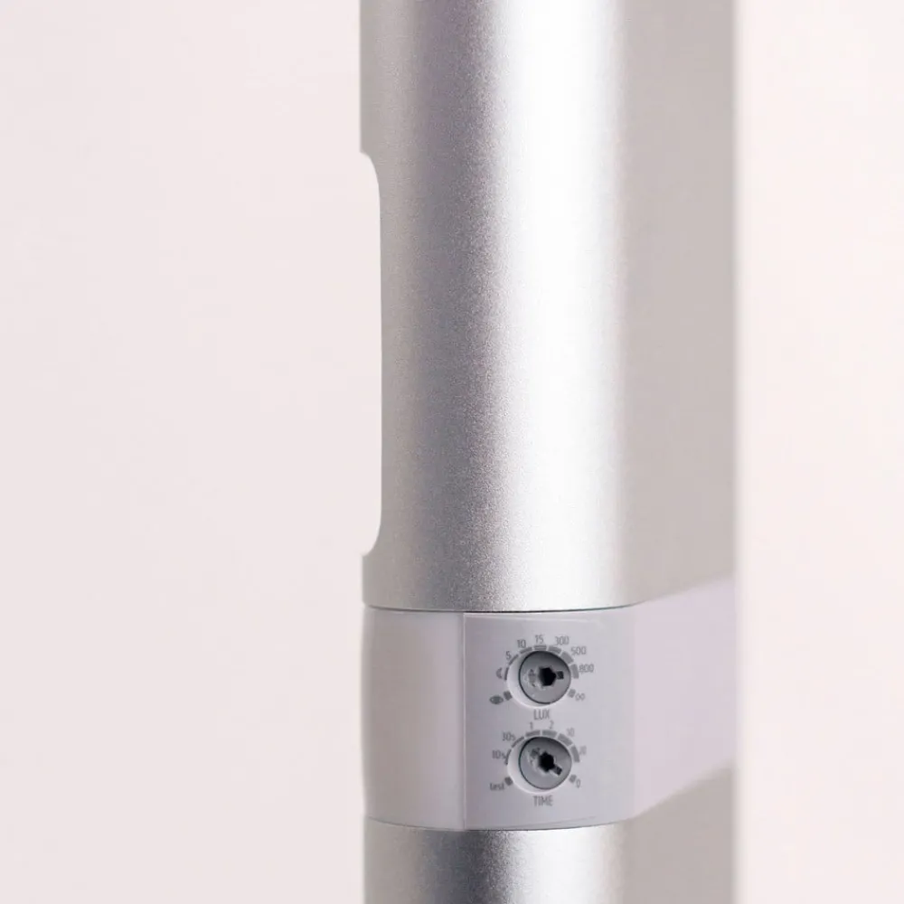 bevegelsessensor slår bare på lyset når det faktisk er behov for lys. Den oppdager bevegelser i en vinkel på 180 ° og har en rekkevidde på ca. 12 meter. Innstillingsområdet for lysstyrken til dagslyssensoren er fra 2 til 800 lux. Forsinkelsestiden for lyset kan varieres fra 10 sekunder til 20 minutter.