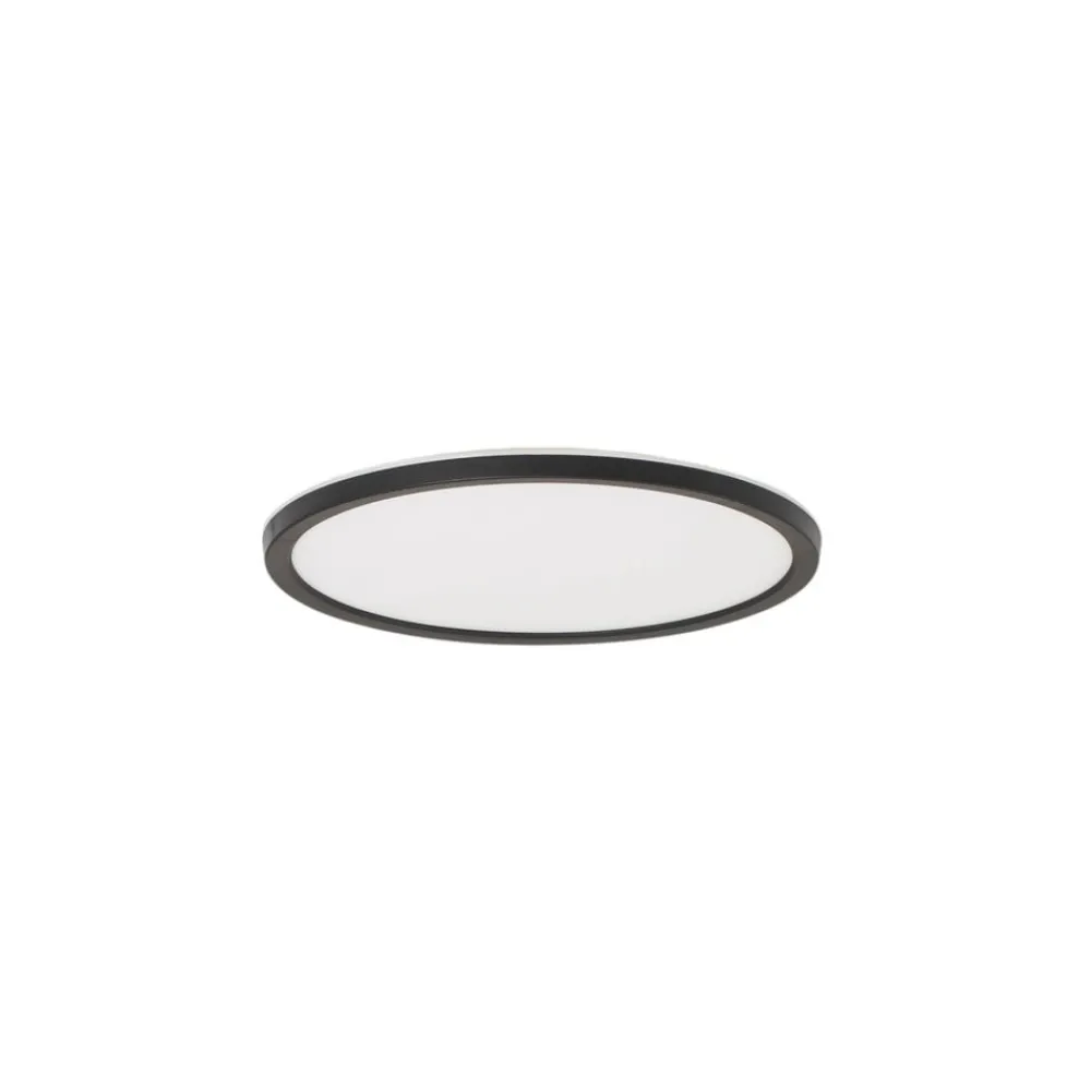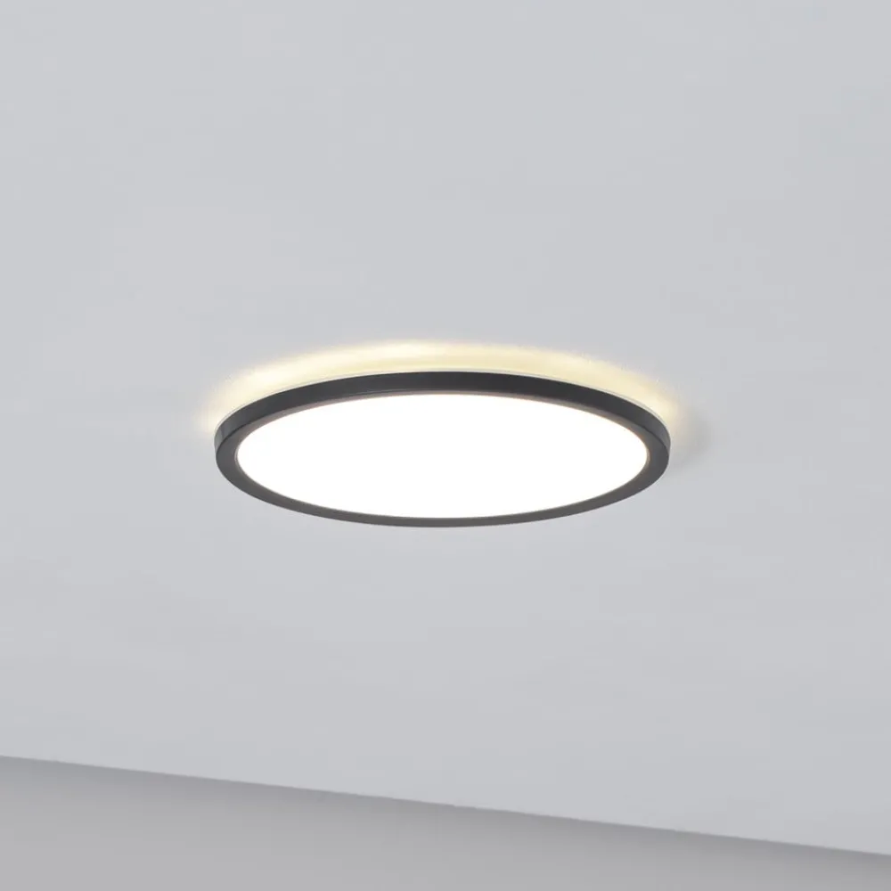 Rundt Aqua LED-panel til baderommet, med svart ramme Aqua LED-taklampen er utformet som et flatt utenpåliggende panel …