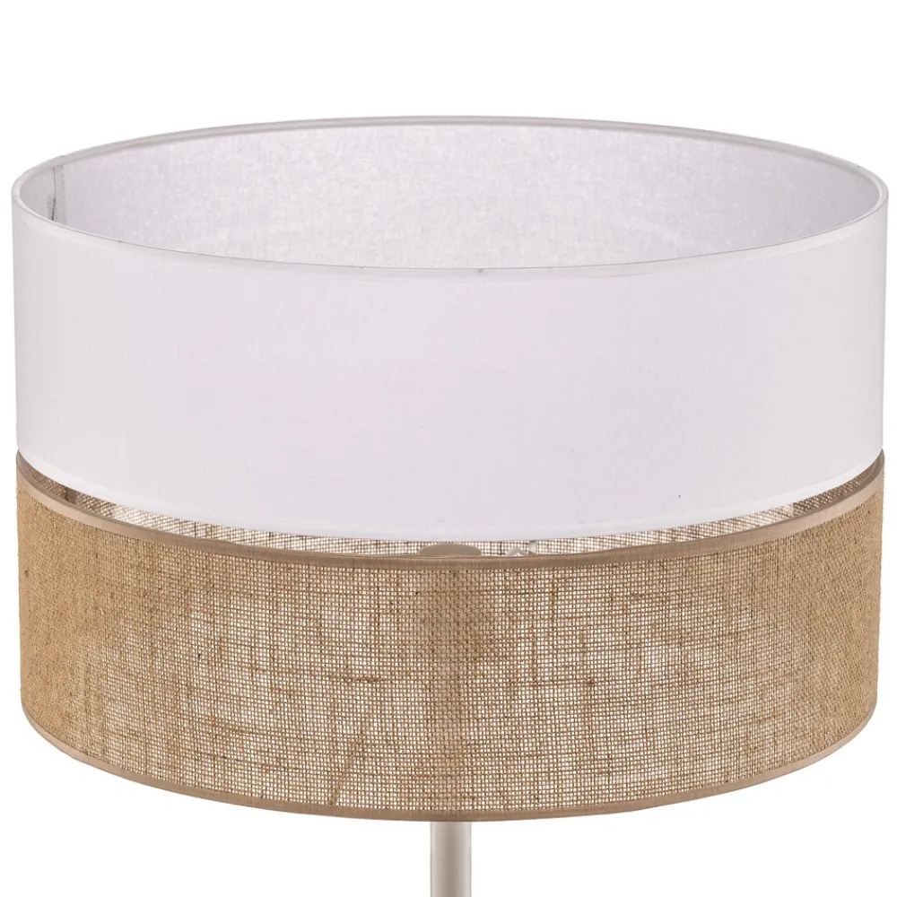 Gulvlampen Linobianco kombinerer moderne design med naturlige materialer og skaper dermed en harmonisk atmosfære i alle rom. Skjermen i høykvalitets stoff og jute gir lampen et varmt og innbydende uttrykk som passer perfekt i stuer, soverom eller spisestuer. Kombinasjonen av hvitt og brunt gir en tidløs eleganse som kan integreres sømløst i ulike interiørstiler.