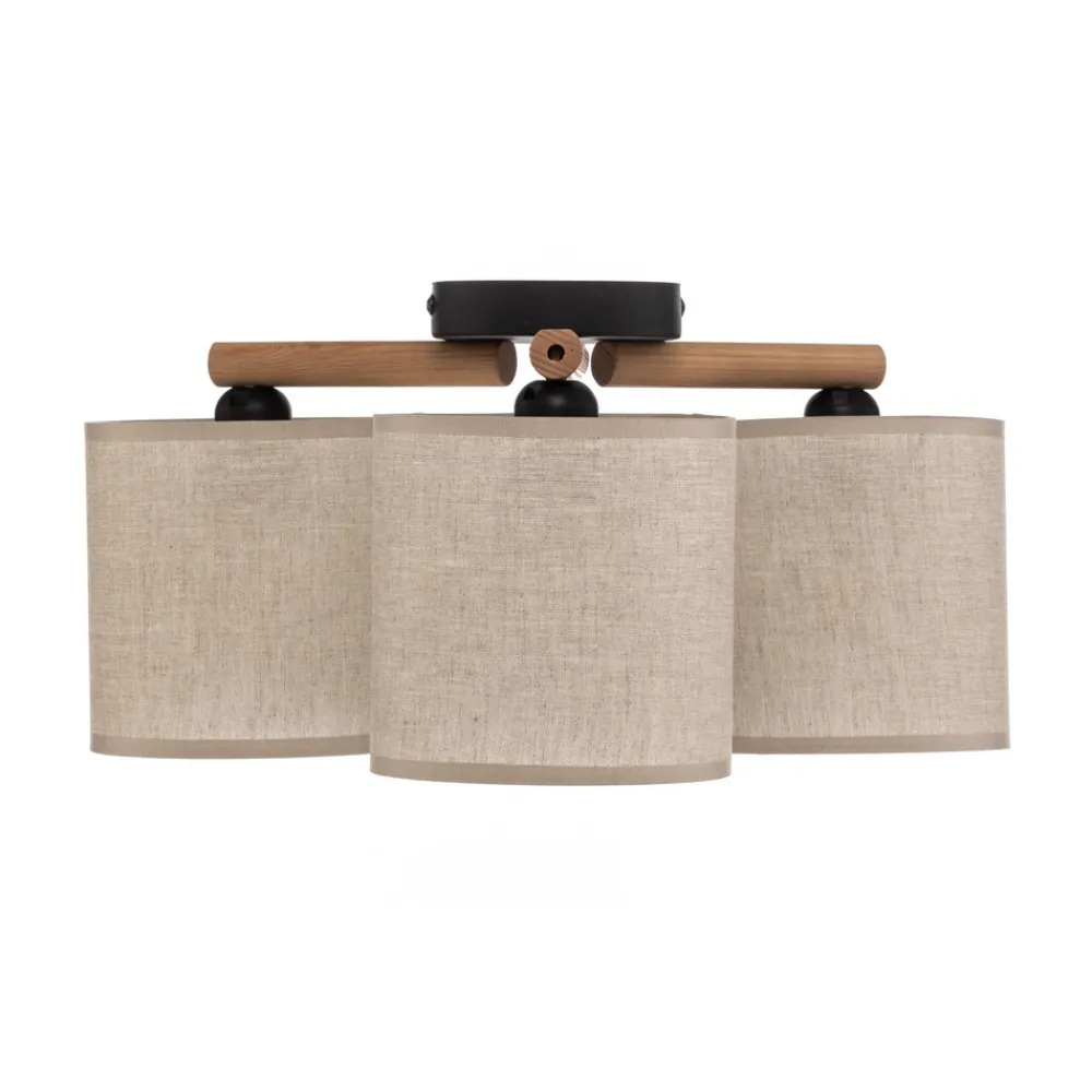 Taklampen Deva kombinerer skandinavisk design med en harmonisk materialkombinasjon av bomull, tre og stål. Denne lampen med 3 lyskilder er tilgjengelig i fargene beige, lyst tre og svart, noe som gir den en tidløs eleganse. Lampen er produsert i Europa og passer perfekt inn i ulike oppholdsrom, enten det er i stuen, spisestuen, gangen eller soverommet.