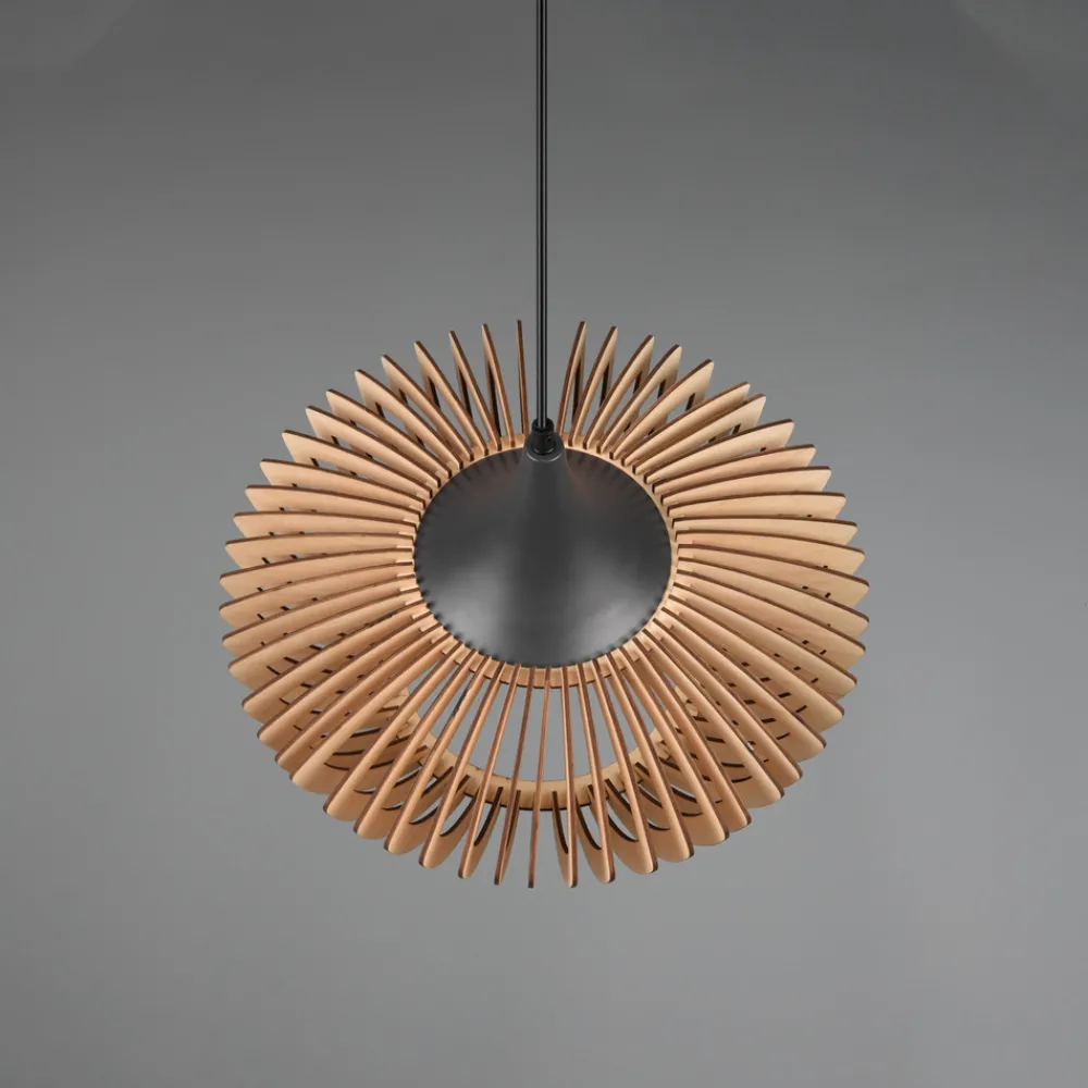 Trio Lighting Hengelampe Colino av trelameller, lyst tre Clearance