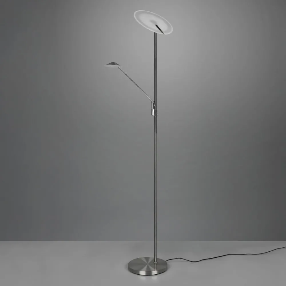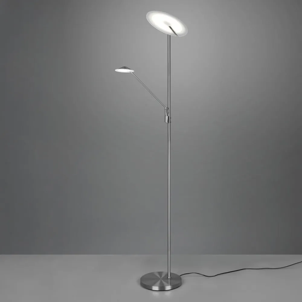 LED-gulvlampe Brantford, leselampe matt nikkel