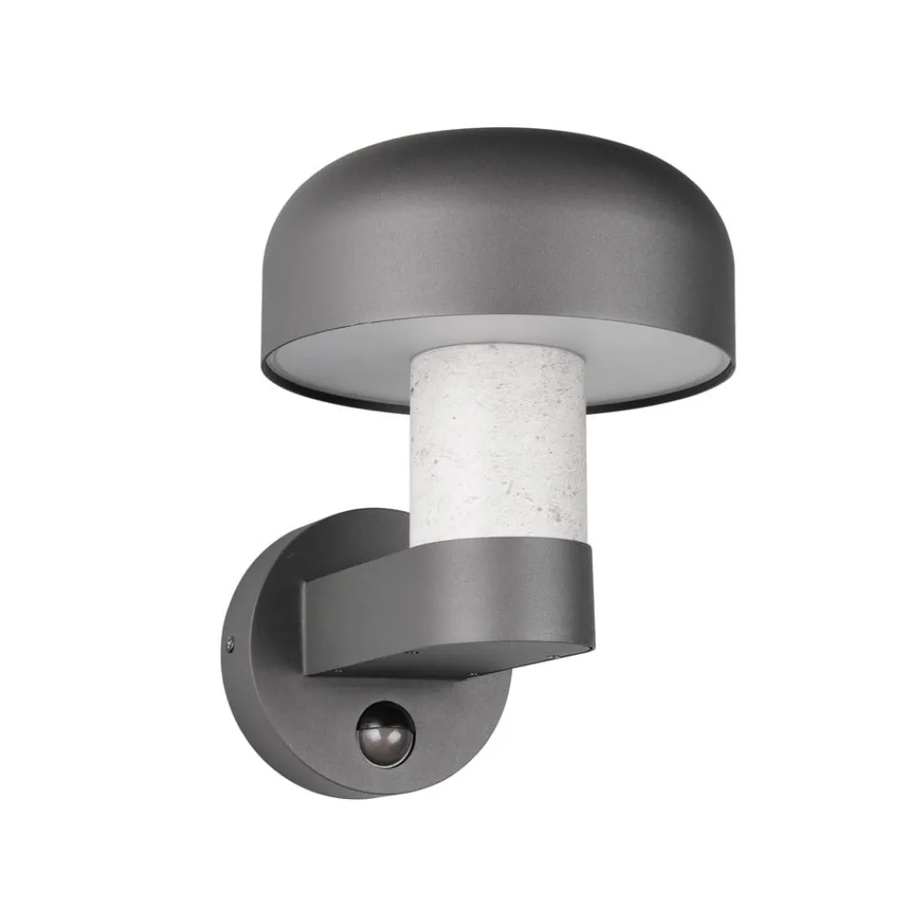 Fraser utendørs vegglampe er laget av trykkstøpt aluminium og kombinert med betong- eller treimitasjon, og har en soppform. Lampen er utstyrt med en bevegelsessensor, og lysvarighet og lysstyrke kan justeres. Pæren (ikke inkludert) avgir lyset nedover og gir et blendfritt lys – perfekt for inngangspartier.