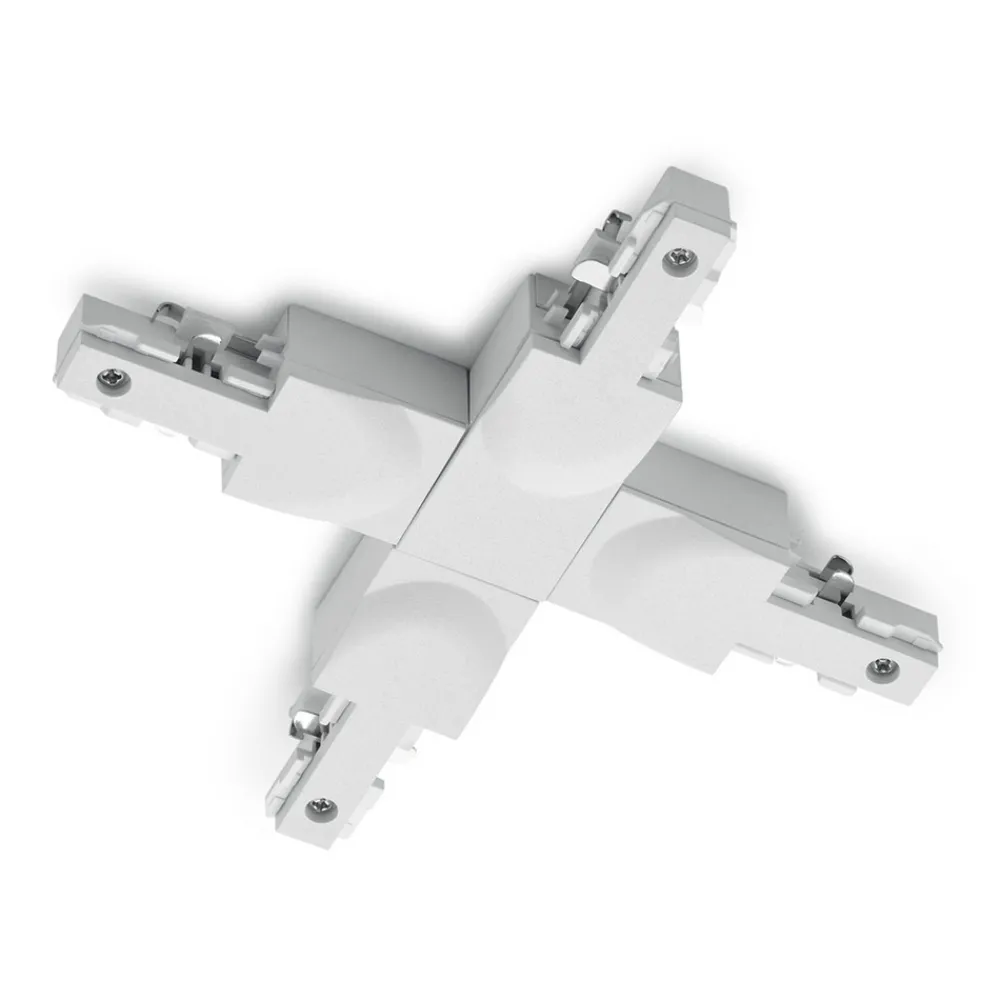 Denne kontakten er beregnet på 2-faset skinnesystem DUOline. Fire skinner kan krysses sammen med X-kontakten. Tilgjengelig i farger for å matche de enkelte skinnene.