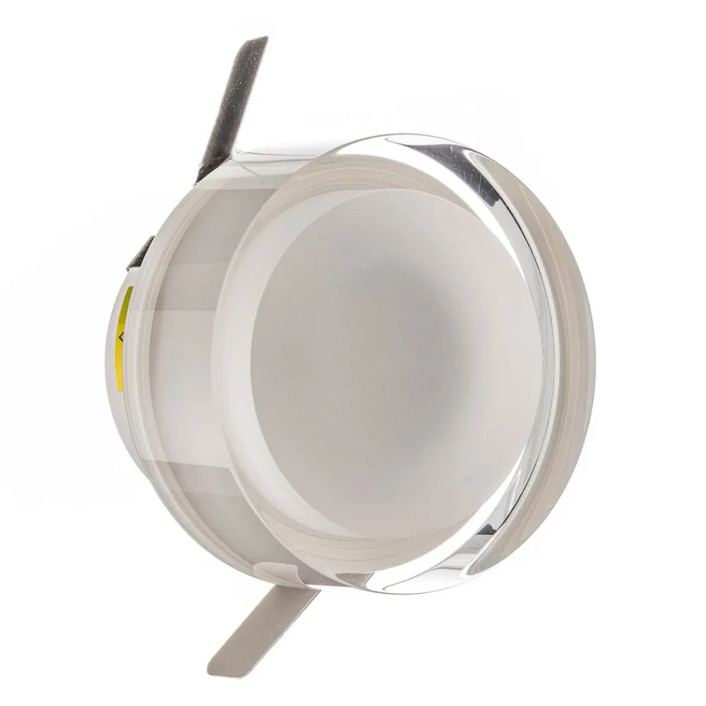 Rund innfelt LED-taklampe Mirbi 1.0 – dimbar Denne innfelte LED-taklampen Mirbi 1.0 er takket være kapslingsgrad IP44 (beskyttelse mot sprutvann) også beregnet for bruk på bad og andre rom der det forekommer fukt. Den moderne, delvis klare og delvis opale plastskjermen, som avgir varmhvitt lys hele veien rundt, har en spesielt dekorativ effekt. En innfelt taklampe som kan harmonere med mange innredningsstiler. Lysintensiteten kan reguleres ved hjelp av en ekstern dimmer. – Takets tykkelse: 2-25 mm – svært god fargegjengivelse
