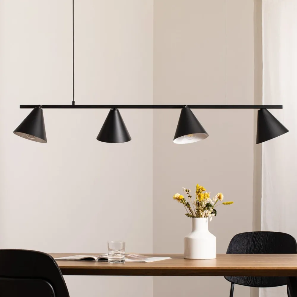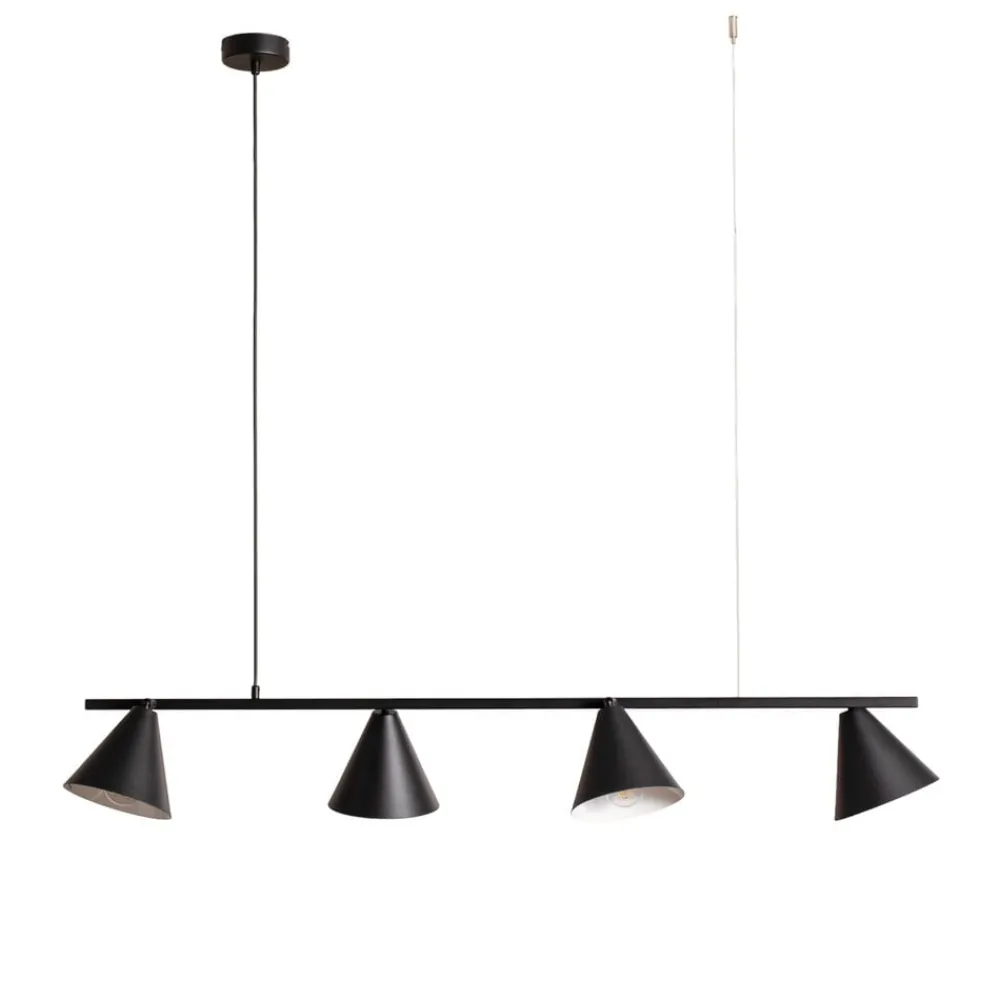 Hengelampen Form 4 kombinerer moderne design med funksjonell allsidighet og blir dermed et stilig høydepunkt i ethvert rom. Lampen er laget av høykvalitets metall og har en elegant svart farge, og passer dermed perfekt inn i ulike interiørstiler. De fire kjegleformede lampekroppene gir jevn belysning og skaper en behagelig atmosfære i spisestuen, kjøkkenet eller stuen.