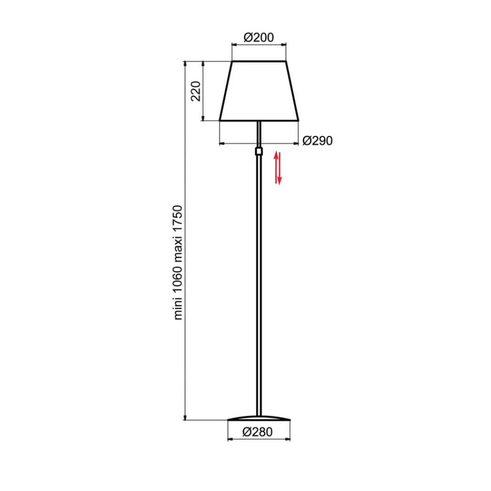 Puristisk utformet gulvlampe Store – justerbar i høyden Den slanke gulvlampen Store med den enkle metallrammen og den klassiske tekstillampeskjermen kan integreres i nesten alle bomiljøer. Enten i stuen ved siden av sittegruppen eller på soverommet – Store gir koselig ekstra lys på alle steder. Høyden på Store gulvlampen kan varieres: metallrammen kan justeres fra 106 cm til maksimalt 175 cm. Store gulvlampen betjenes enkelt via fotbryteren som er integrert i tilførselsledningen.