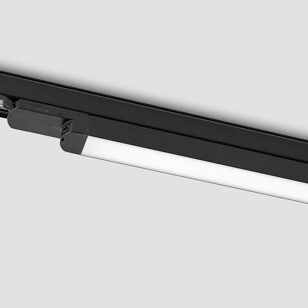 Svart Harlow LED lineær armatur for montering på skinnesystem Harlow er en lyskilde som gir god belysning med sin langstrakte form. Takket være LED-teknologien kan man sikre god lysstyrke med lavt strømforbruk, og lysdiodene bak det hvite plastdekselet gir en så jevn belysning som mulig og dermed et behagelig lys. ALS skinnesystemarmatur er Harlow en lyskilde som kan brukes på mange forskjellige måter, og den kan også kombineres med alternative lyskilder på 3-fase skinne. Det er ikke bare rom i private leiligheter og hus som egner seg for bruk av LED-skinnesystemet, men det er også alltid et nyttig tillegg i kommersielle eller offentlige bygninger når det gjelder å skape et sofistikert, skreddersydd belysningskonsept. Visuelt holder armaturen på skinnesystemet seg diskret i bakgrunnen og scorer poeng med en moderne overflate i svart – for bruk på 3-fase skinne – SDCM < 4 – UGR 29.3
