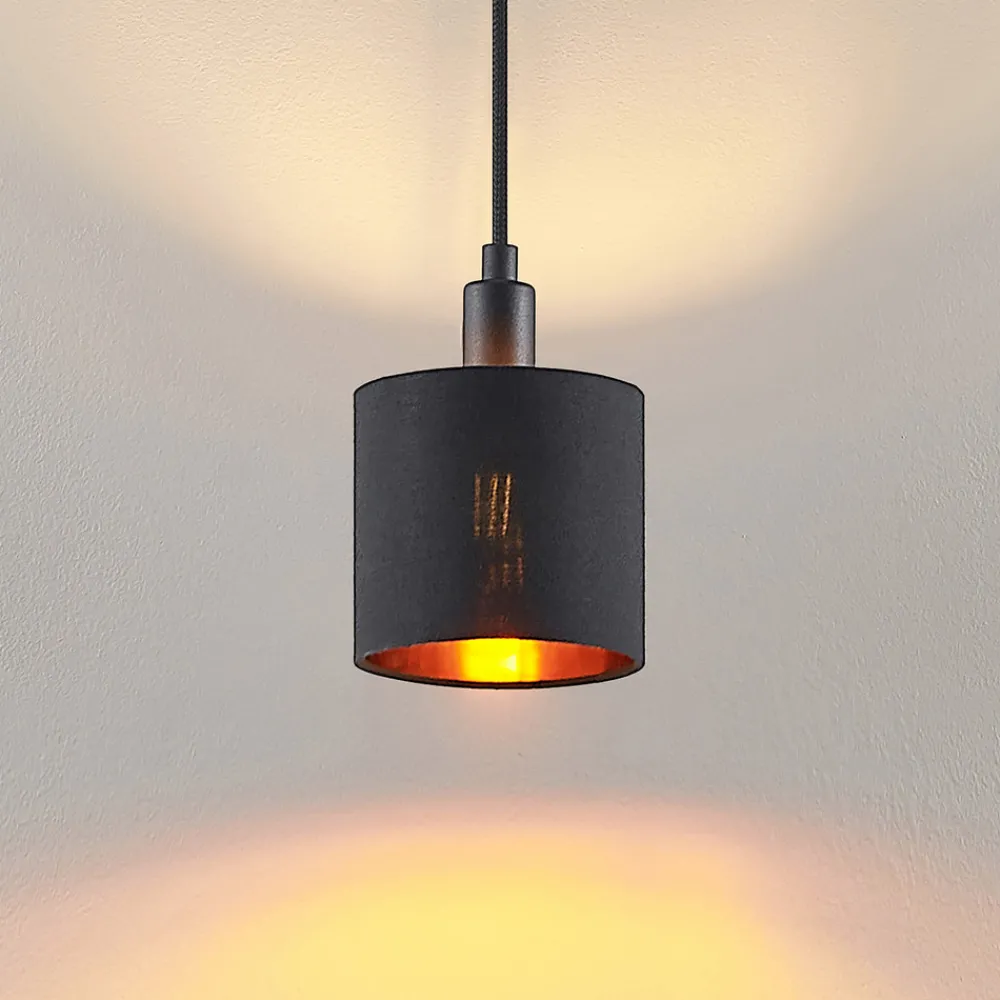 Heleni overbeviser med sitt stilige design og sitt høykontrastfargevalg. Pendellampen har en lampeskjerm laget av sandsvart tekstil, hvis innervegger er holdt i et slående gull. Denne skjermen kan utstyres med passende lyskilder. De ugjennomsiktige veggene skaper en blendingsfri belysning og den gyldne fargen skaper et koselig lys. Heleni pendel kan integreres i et 3-fase skinnesystem og enkelt kombineres med andre lys i serien.