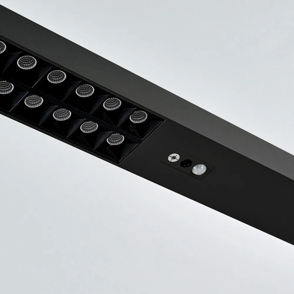 Funksjonell LED-gulvlampe til kontor Jolinda med dagslyssensor, bevegelsessensor, dimmer og direkte-indirekte belysning, sett med 2 stk Jolinda har et minimalistisk og svært moderne utseende, da gulvlampen i utgangspunktet bare består av to smale stråler som er plassert vinkelrett på hverandre. Lyset skinner både oppover og nedover, nesten uten å blende nedover, noe som gir en svært behagelig lysopplevelse som er perfekt for lange perioder med konsentrert arbeid ved skrivebordet. LED-gulvlampen er egnet til å belyse et skrivebord, som da forsynes med sterkt lys. Den høye funksjonaliteten bør også nevnes, da Jolinda ikke bare har en dimmefunksjon, men også styres via en dagslyssensor og en bevegelsessensor. Etter tretti minutters fravær slår armaturen seg av, og dagslyssensoren sørger for en relativt konstant lysstyrke i rommet fordi lyset fra LED-gulvlampen blir lysere eller mørkere avhengig av lysstyrken utenfor – med U-formet sokkel – UGR < 6 Armaturene er optimalisert for å gi en ideell, blendingsfri og jevn belysning for et standard skrivebord på 160 cm x 80 cm. Vi anbefaler derfor å bruke én lampe per skrivebord. Leveres i et praktisk sett med 2 stk.