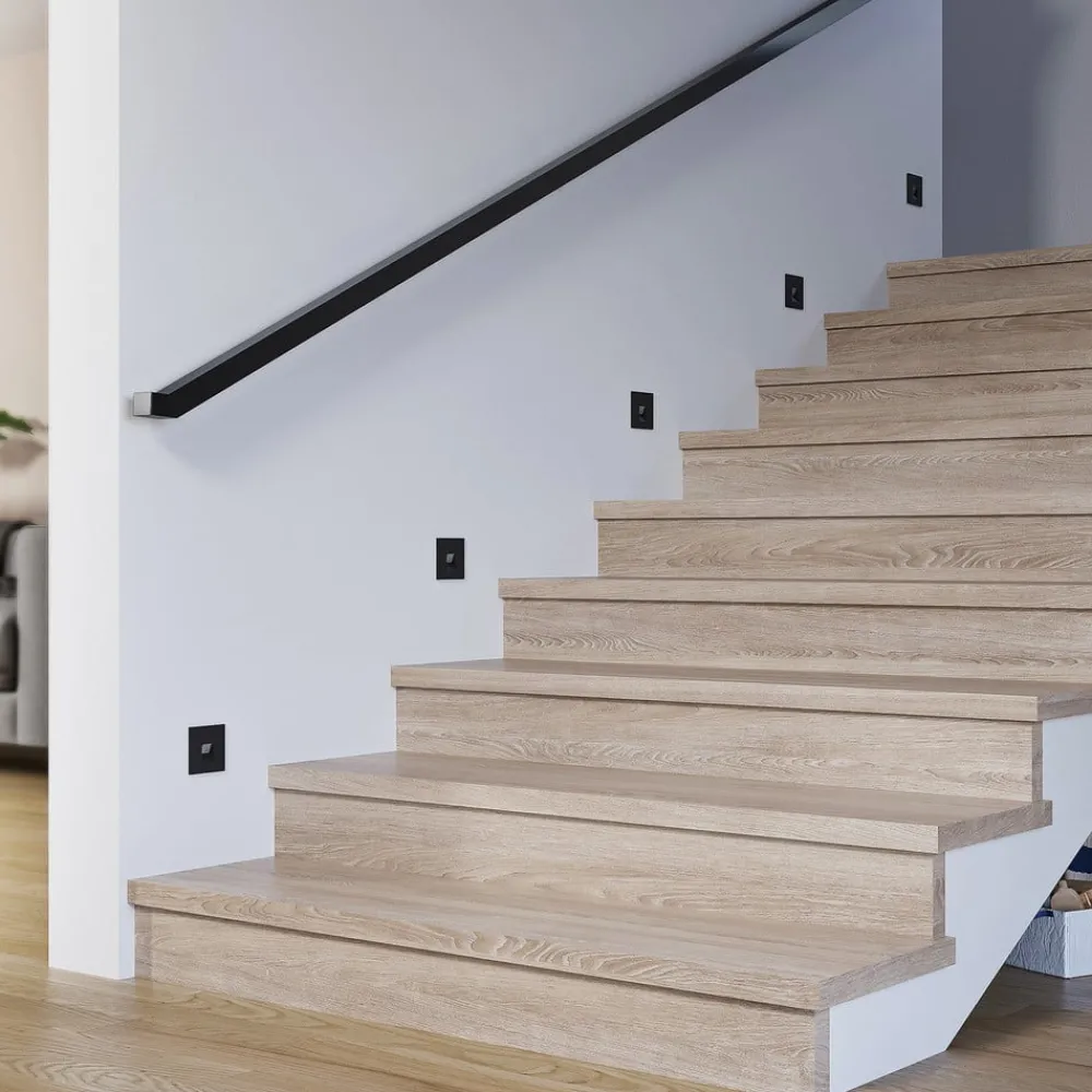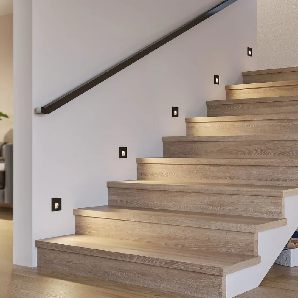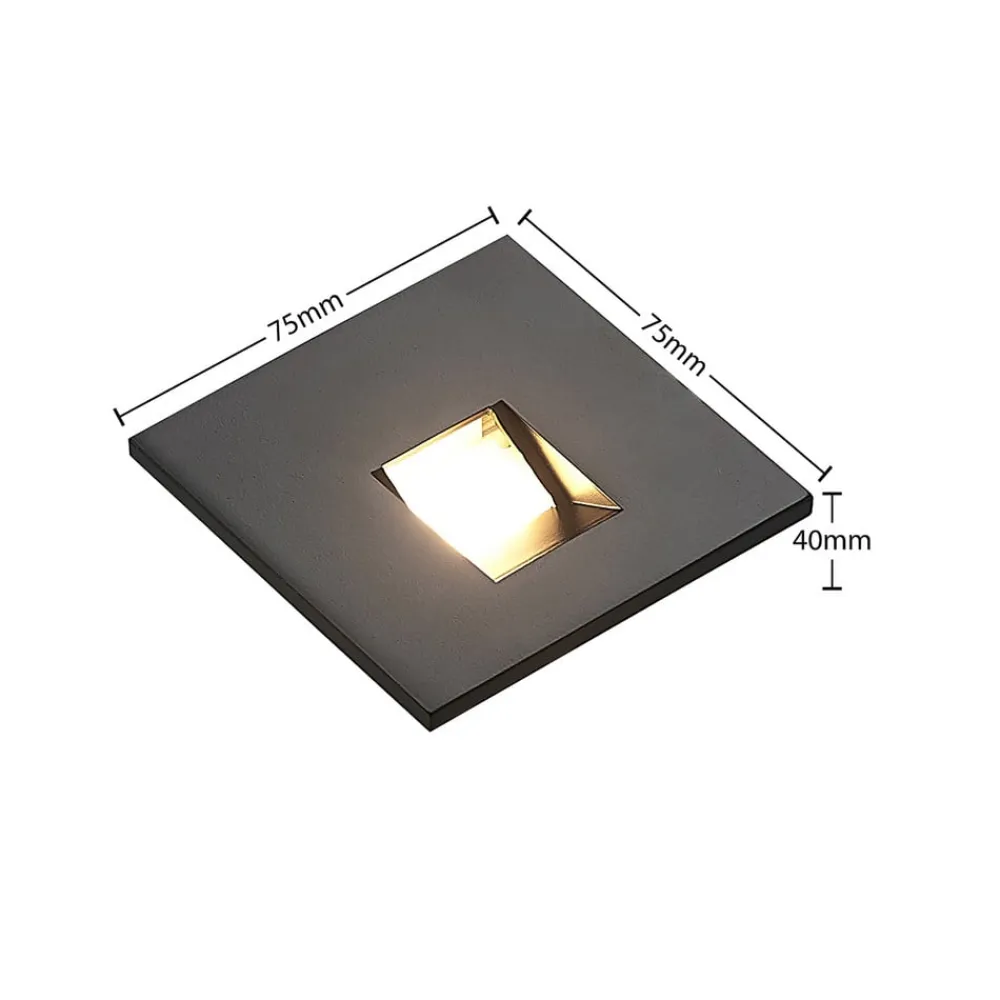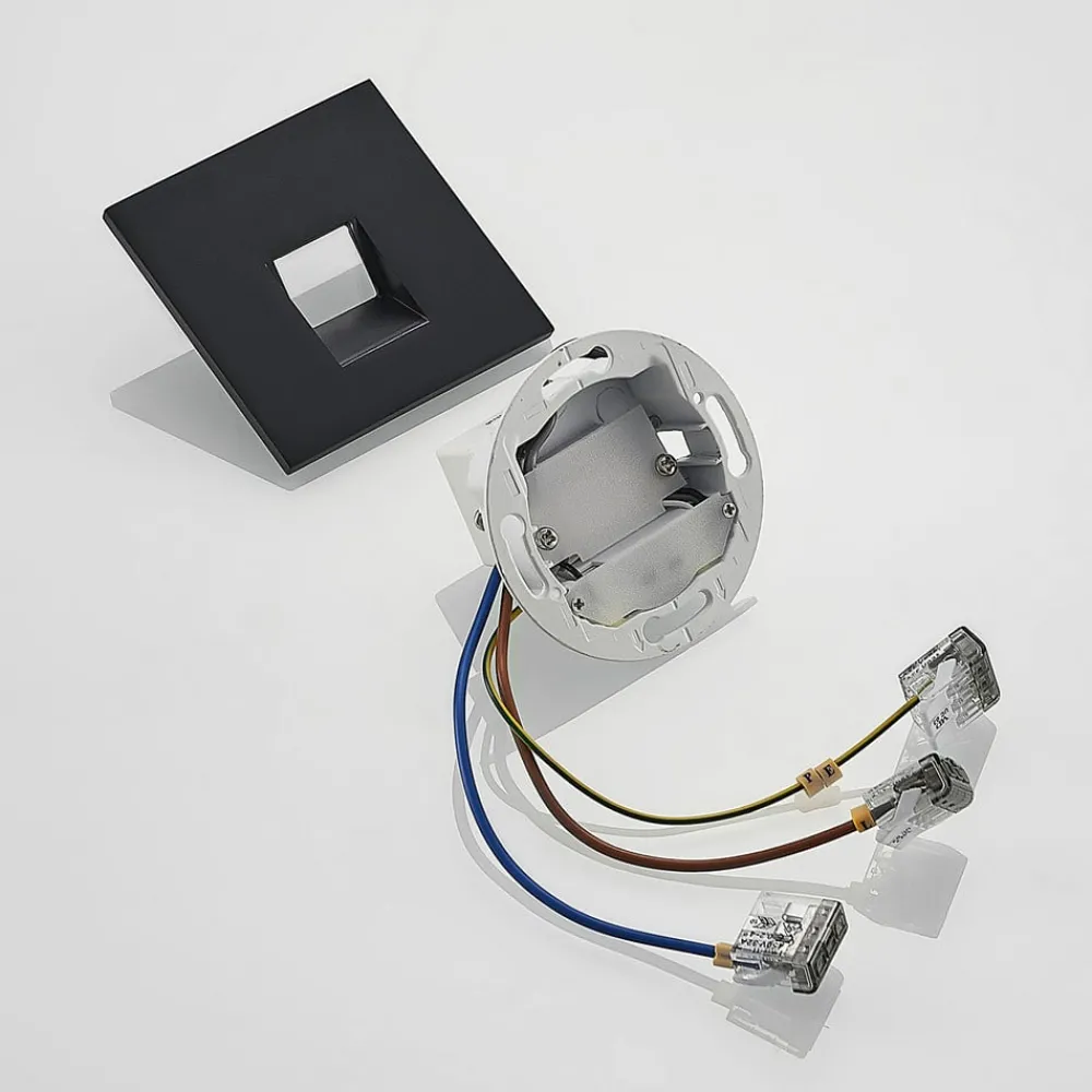 Diskret LED innfelt vegglampe Vexi i svart aluminium Vexi er den perfekte følgesvenn når det gjelder belysning av trapper eller korridorer og bidrar til å belyse potensielle snublefarer. Den er laget av aluminium og har en kompakt, kantet design. Lampekroppen forsvinner nesten helt inn i veggen, og etterlater bare en firkantet plate på veggflaten. Lysfargen på LED-lampene kan stilles inn ved hjelp av en dip-bryter på baksiden (2 700 K, 3 000 K og 4 000 K). Med sin enkle design passer Vexi LED innfelt vegglampe lett inn i interiørstilen og kan kombineres med andre lamper i serien – god fargegjengivelse CRI > 90 – CCT – mulighet for gjennomgående kabling