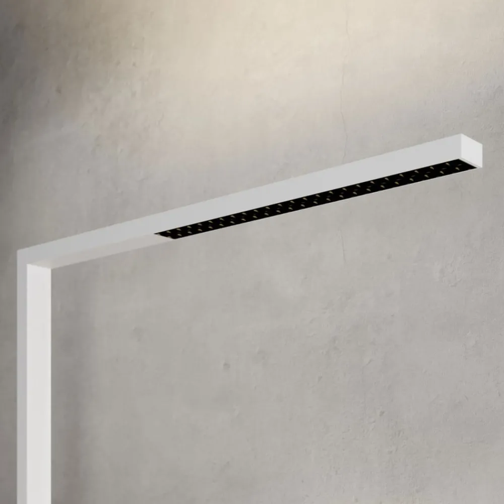 Hvit LED-klemmelampe Jolinda til kontorarbeidsplassen, blendfritt lys og berøringsdimmer, 4000 Kelvin Jolinda er en bordlampe som ikke holdes på plass av en fot, da den ser nesten akkurat ut som en LED-gulvlampe til kontor hvis man ikke ser nøye etter, men har en integrert klemmesokkel med en skrueklemme som gjør at den kan festes sikkert til kontorpulten, noe som gjør den til et innovativt belysningsobjekt for kontorlokaler. Spørsmålet om hvor man skal plassere armaturens sokkel hører definitivt fortiden til med denne designen, da det alltid skal være litt plass til å feste skrueklemmen. Dimmeren for nøyaktig justering av lysstyrken er plassert på armaturrammen i form av en berøringsplate, og lyset er svært sterkt i grunntilstanden, der størstedelen av lyset sendes indirekte oppover. Den direkte lyskomponenten minimerer blending og gir et universalhvitt lys av høyeste kvalitet og med en mest mulig naturlig effekt, noe som muliggjør effektivt og konsentrert arbeid uten at øynene blir for tidlig trette.