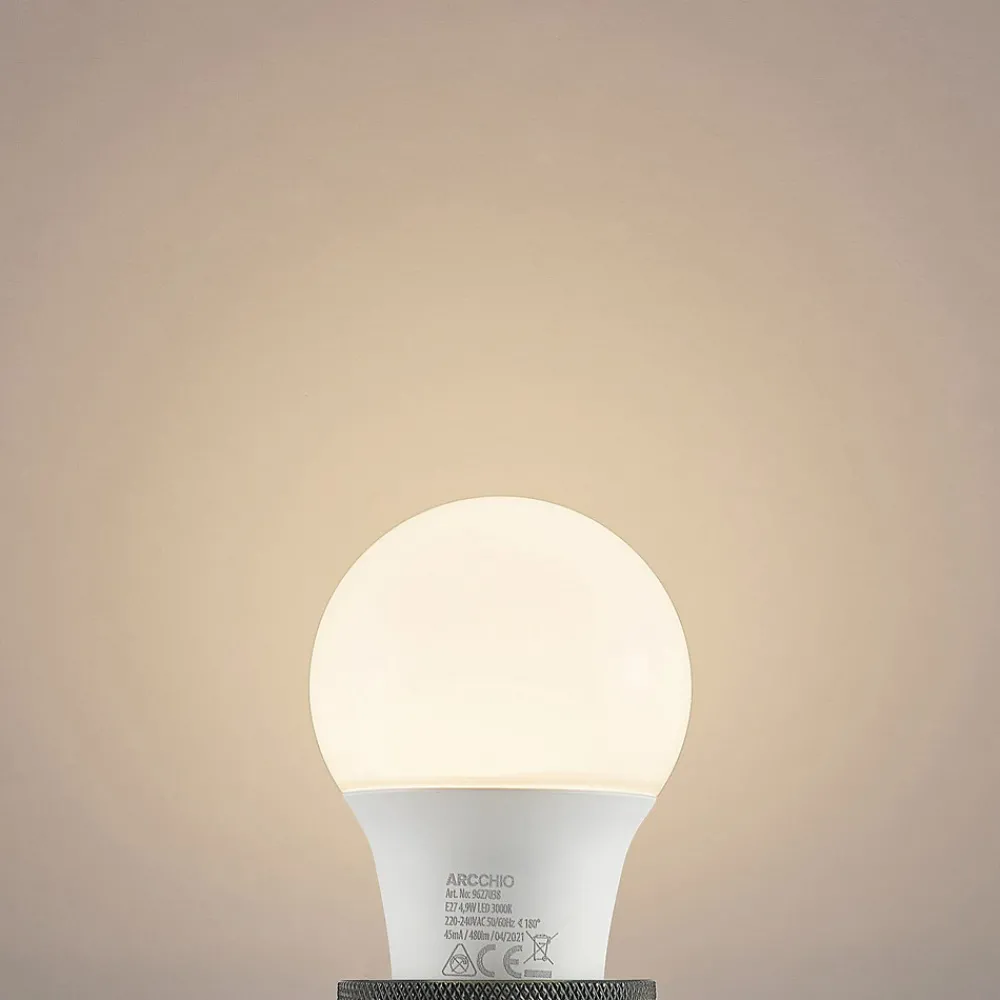 LED-lampe E27 A60 4,9W med opalt deksel og varmhvit lysfarge i en praktisk bunt på tre
