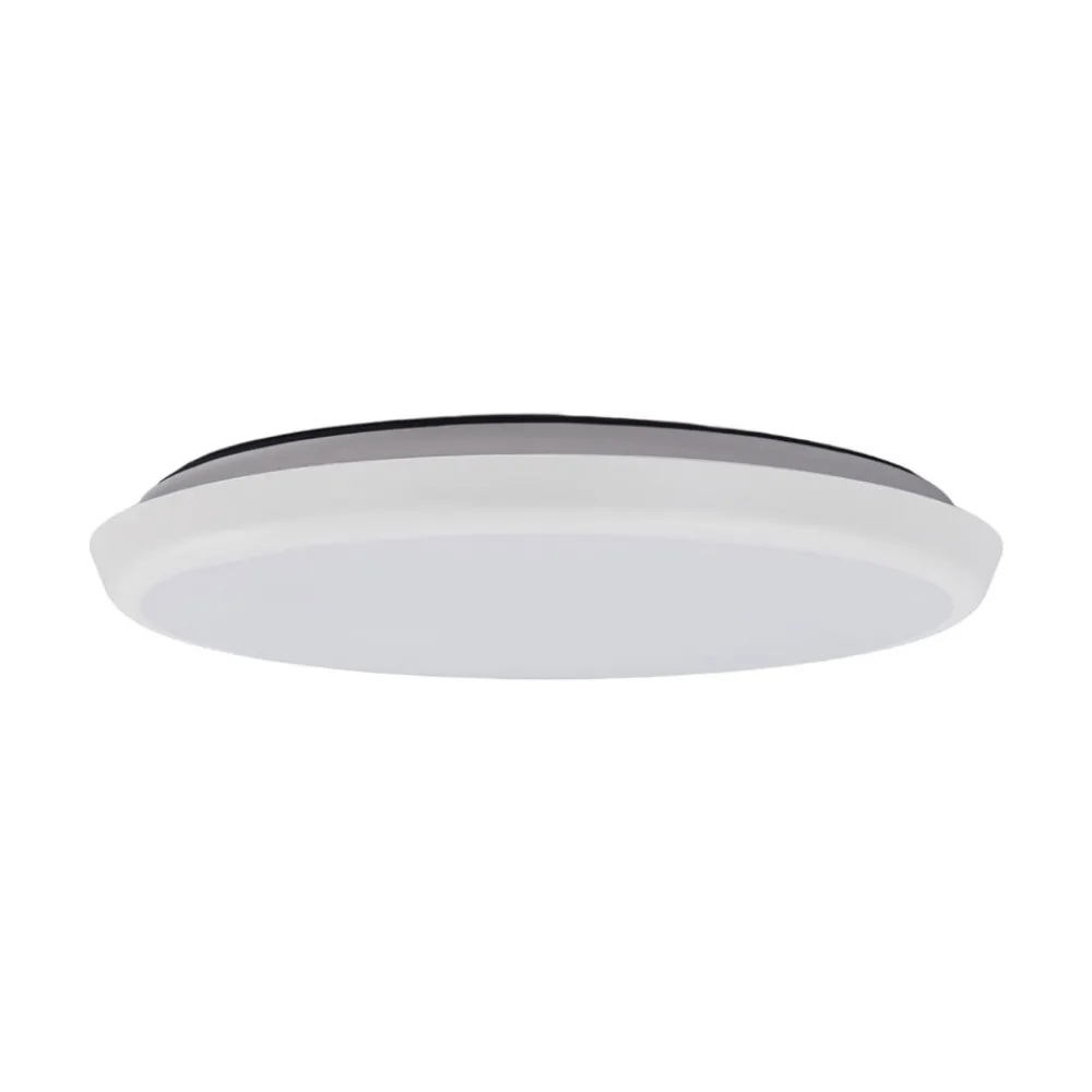 Rund LED-taklampe Augustin med høy lysstyrke og kapslingsgrad IP54, valgbar lysfarge Augustins runde ramme er hvitlakk…