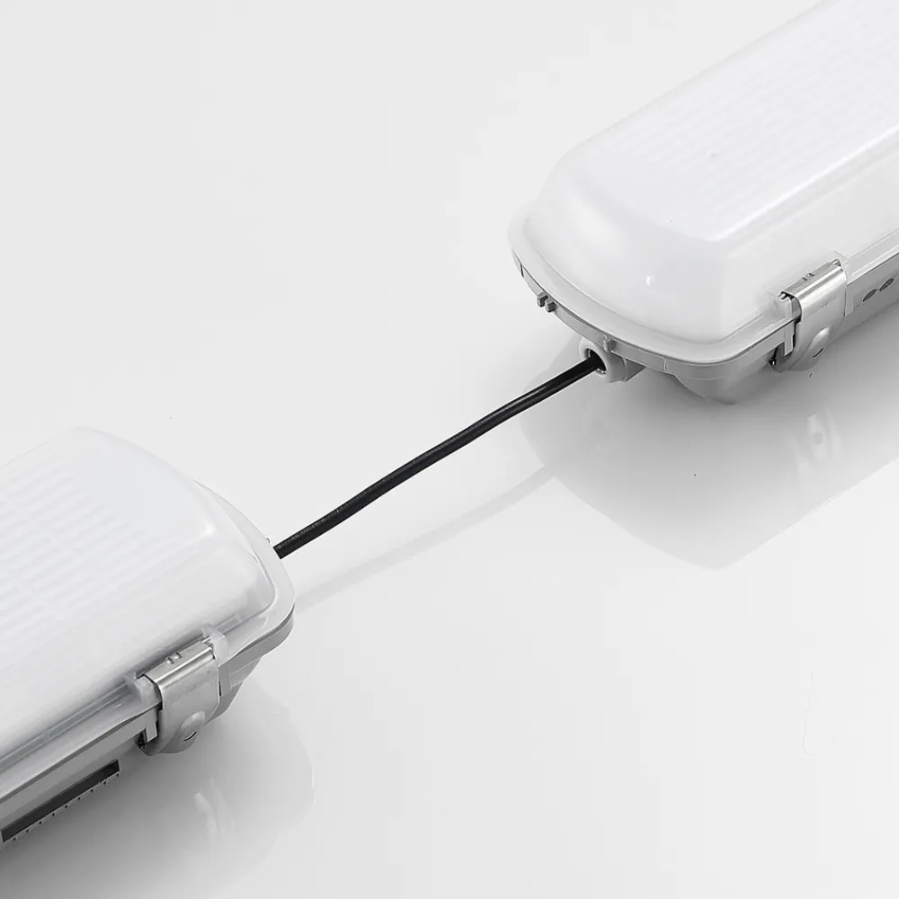 Avlang Rao utenpåliggende LED-armatur for fuktige rom, lysfarge justerbar før installasjon, IP65 Rao er en først og fremst funksjonell lyskilde som er svært robust, ikke minst takket være sin høye slagfasthet, og som egner seg svært godt i fuktige rom som garasjer eller kjellere. Bruksområdet er ikke begrenset til private lokaler, men kan også tenkes brukt i næringsbygg. Til tross for et moderat strømforbruk er lyset fra de flimmerfrie LED-lampene svært sterkt, noe som gjør det enkelt å arbeide i Raos lys, og armaturen er spesielt effektiv. Den høye kapslingsgraden IP65 indikerer at armaturen er godt beskyttet mot fuktighet og smuss. Lysfargen kan stilles inn før installasjon, da det finnes en DIP-bryter på armaturhuset til den utenpåliggende diffusorarmaturen som bestemmer fargetemperaturen i tre trinn. Hvis du ønsker å installere flere armaturer, kan du koble dem sammen ved hjelp av gjennomgående ledninger – IP65 – flimmerfri – SDCM <; 5 – IK08 – armaturen leveres i et praktisk sett med 2 stk
