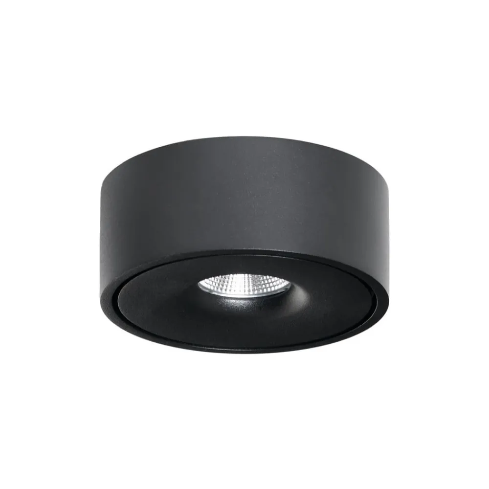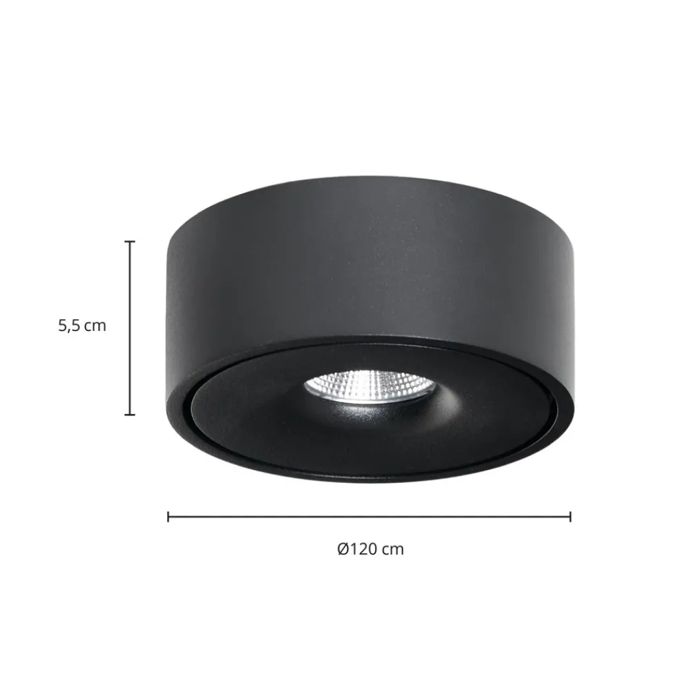 Moderne LED-taklampe Rotari i mørk design Rotari imponerer med sin klare, runde design og passer perfekt inn i ulike miljøer. Armaturhuset er laget av aluminium og har en svart finish som gjør den perfekt å kombinere med moderne stilarter. Det varmhvite lyset sendes rett nedover i en vinkel på 34°, noe som minimerer risikoen for blending. Armaturen egner seg godt som butikkbelysning, da den scorer høyt med en CRI-verdi på over 90. Armaturen er ekstremt lyssterk og kan ved behov dimmes med en forkant- eller bakkantfasedimmer.