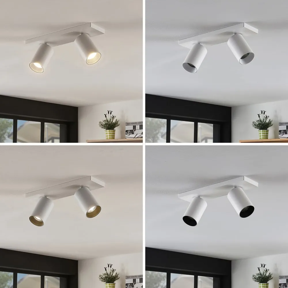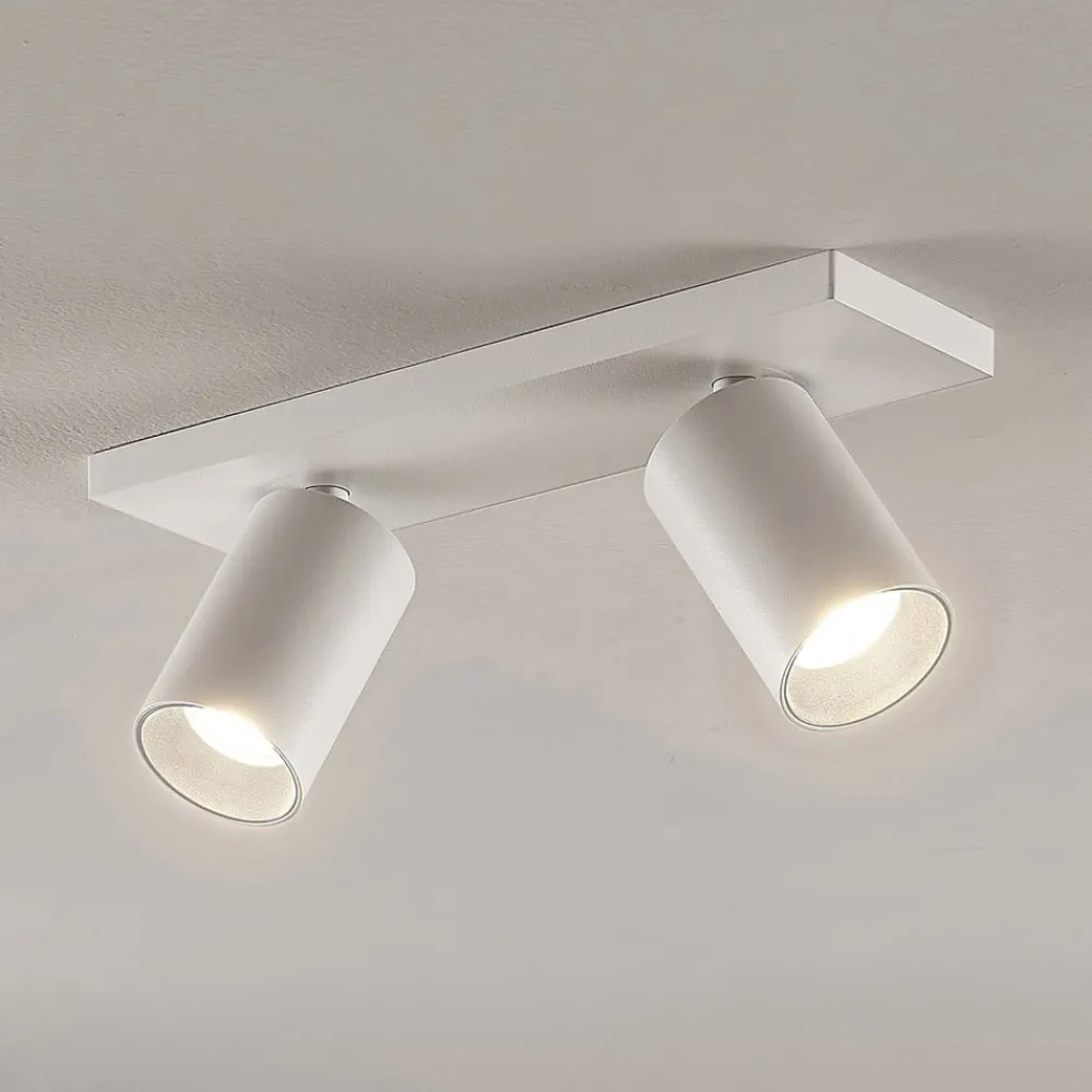 Den hvite lampen Brinja består av to sylinderformede spotlights som begge kan vippes 90 grader og dreies 350 grader rundt sin egen akse. Spotlights er festet til en rektangulær holder, slik at de kan monteres både på vegger og tak.