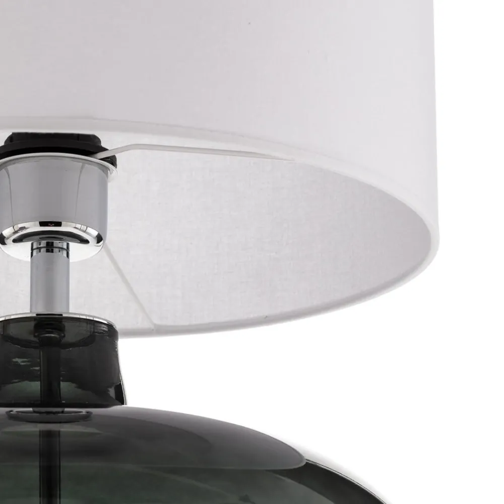 Bordlampen Skien kombinerer moderne design med høykvalitetsmaterialer som glass, stoff og metall. Den hvite skjermen og den røykgrå glassfoten skaper et harmonisk samspill som setter aksenter i enhver stue, soverom eller spisestue. Denne lampen er ikke bare et blikkfang, men også et uttrykk for europeisk håndverk.