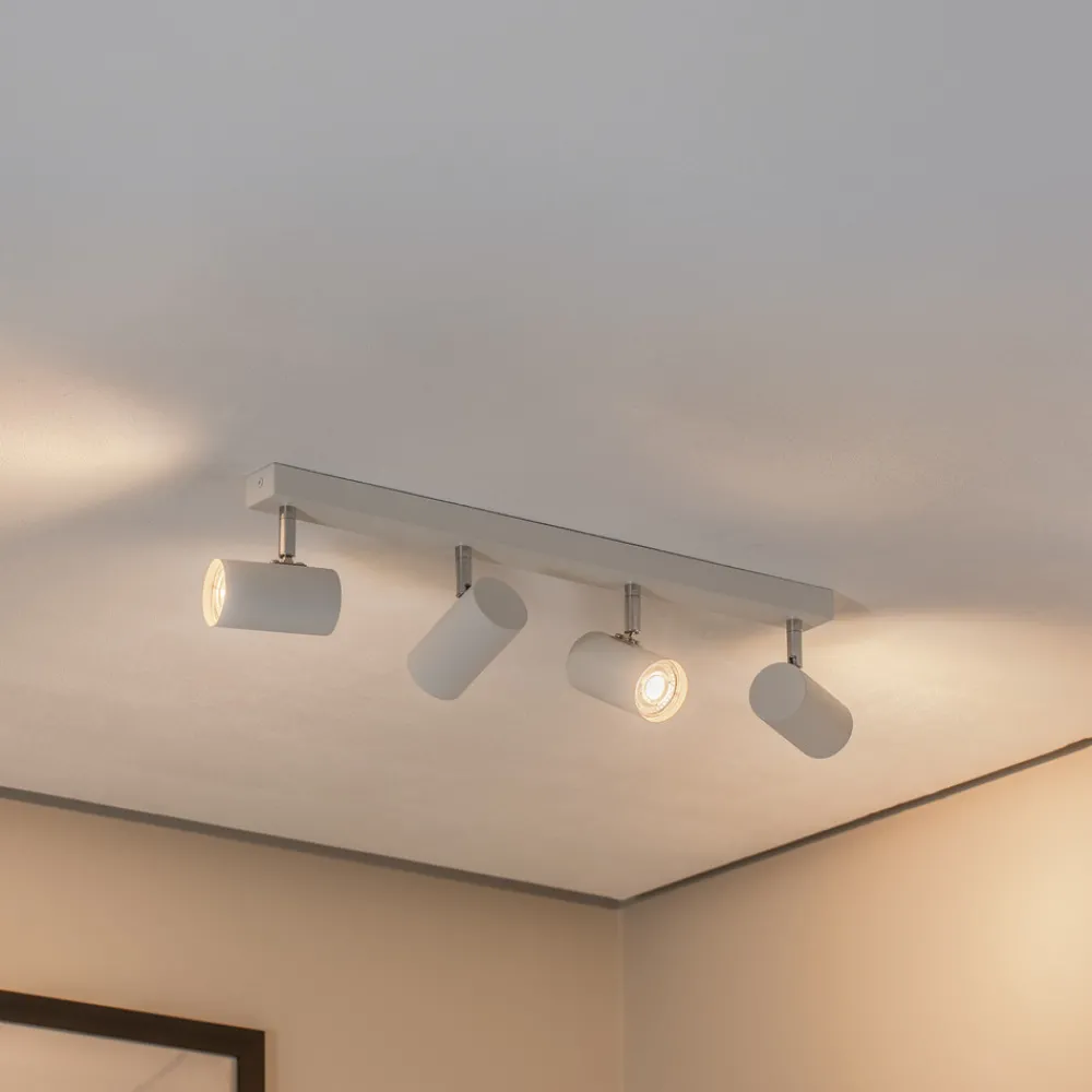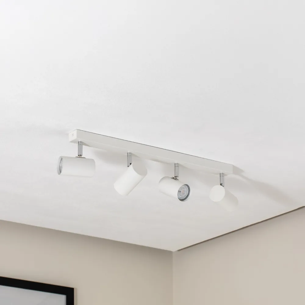 Downlight Tag i hvitt og kromfarget kombinerer moderne design med funksjonell belysning. Denne spotlyset med 4 lyskilder er laget av høykvalitetsstål og passer perfekt inn i ulike oppholdsrom som stue, soverom, gang og spisestue. Kombinasjonen av hvit og kromfarget finish gir rommet en tidløs eleganse, mens de klare linjene understreker den moderne stilen.