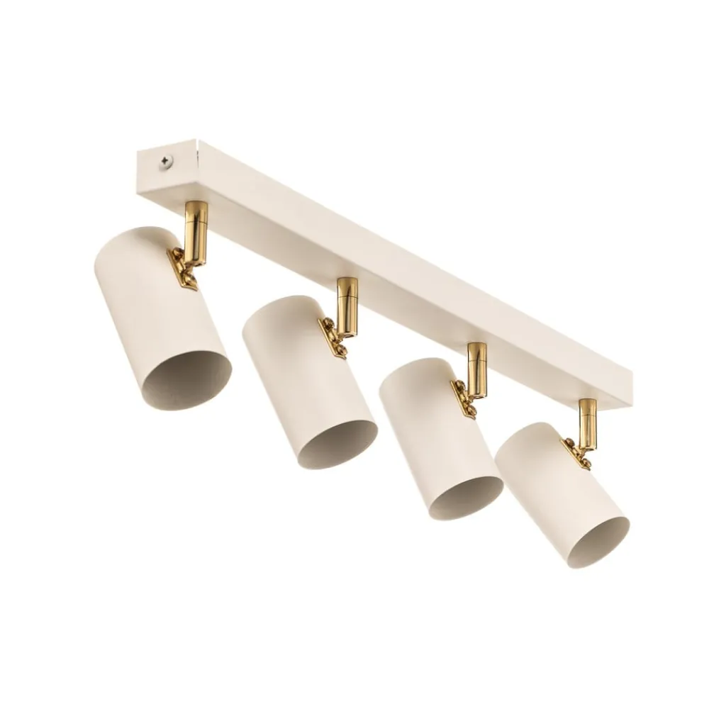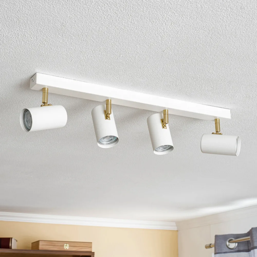 Downlight Lund i hvitt kombinerer moderne design med funksjonell allsidighet. Denne spotlights med 4 lyskilder er laget av høykvalitets stål og har en tiltalende kombinasjon av matt hvit og gylden farge. Denne stilige lampen passer perfekt inn i forskjellige oppholdsrom som stue, soverom, gang og spisestue, og gir hvert rom et spesielt preg.