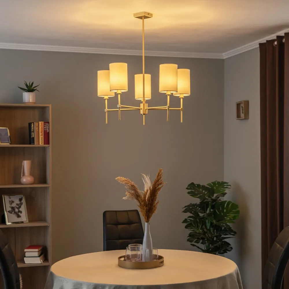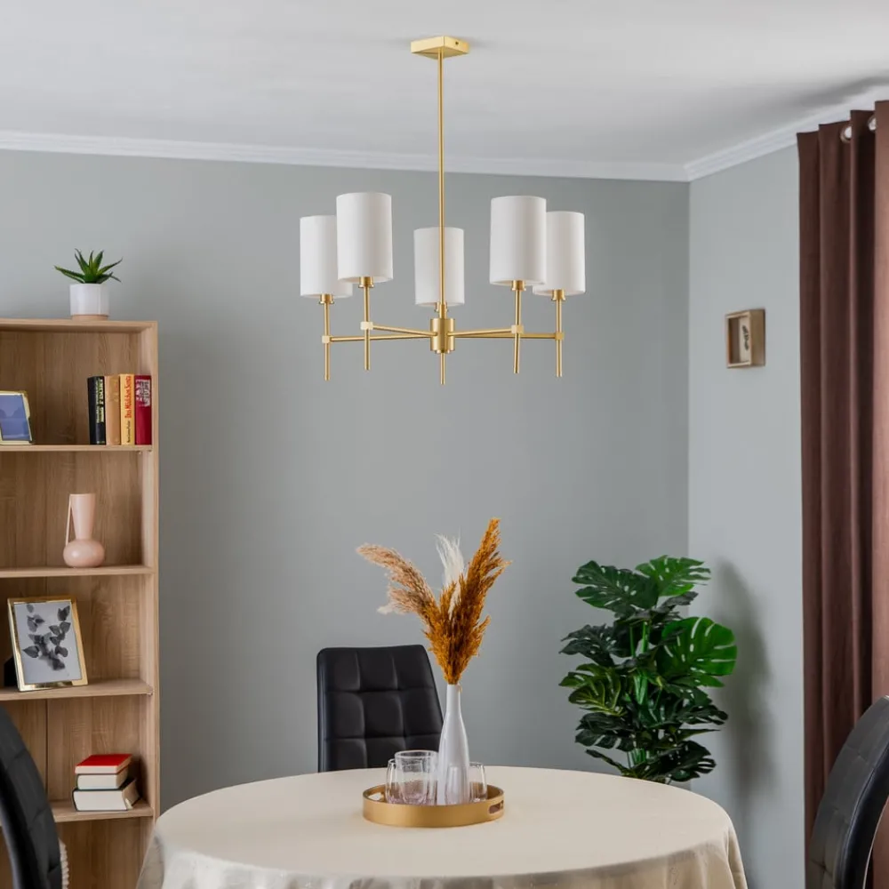 Lysekrone Azzi kombinerer tidløs eleganse med moderne allsidighet. Denne lysekronen med 5 lyskilder er laget av høykvalitets velourstoff og robust stål, og tilbyr en imponerende kombinasjon av stil og funksjonalitet. Den harmoniske fargen i messing og hvitt gir ethvert rom, enten det er stue eller spisestue, et spesielt preg. Muligheten for dimbarhet via en ekstern dimmer gjør det mulig å justere lysintensiteten individuelt og dermed skape den ønskede atmosfæren.