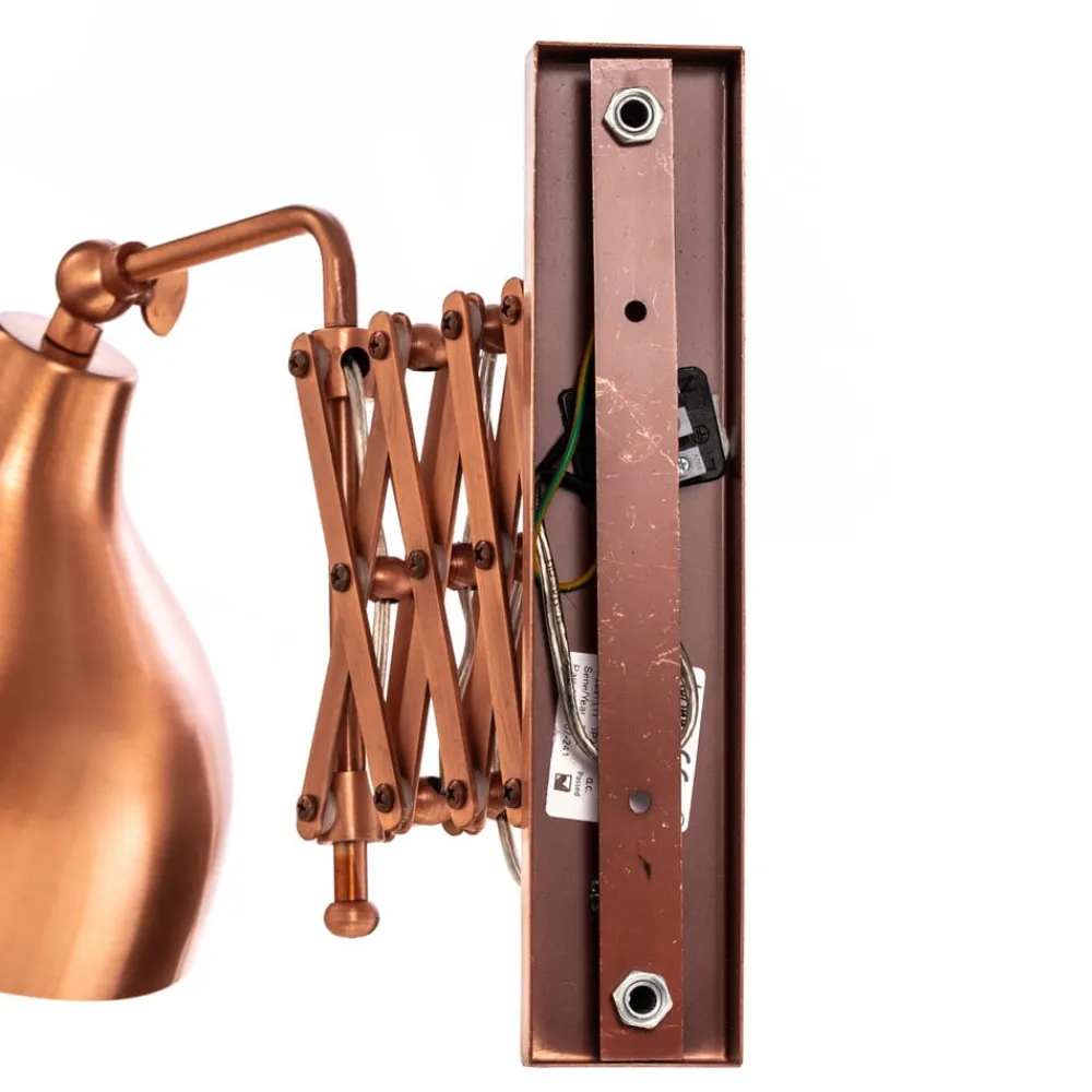 Vegglampe HAP-9082-CPR kombinerer stilig design med funksjonell fleksibilitet. Lampen er laget av høykvalitets jern og metall og har en elegant kobberfarge som gir ethvert rom en varm og innbydende atmosfære. Det karakteristiske saksarmdesignet gjør det mulig å justere lyskilden individuelt, noe som gjør den ideell for bruk i stuer, soverom eller arbeidsrom.
