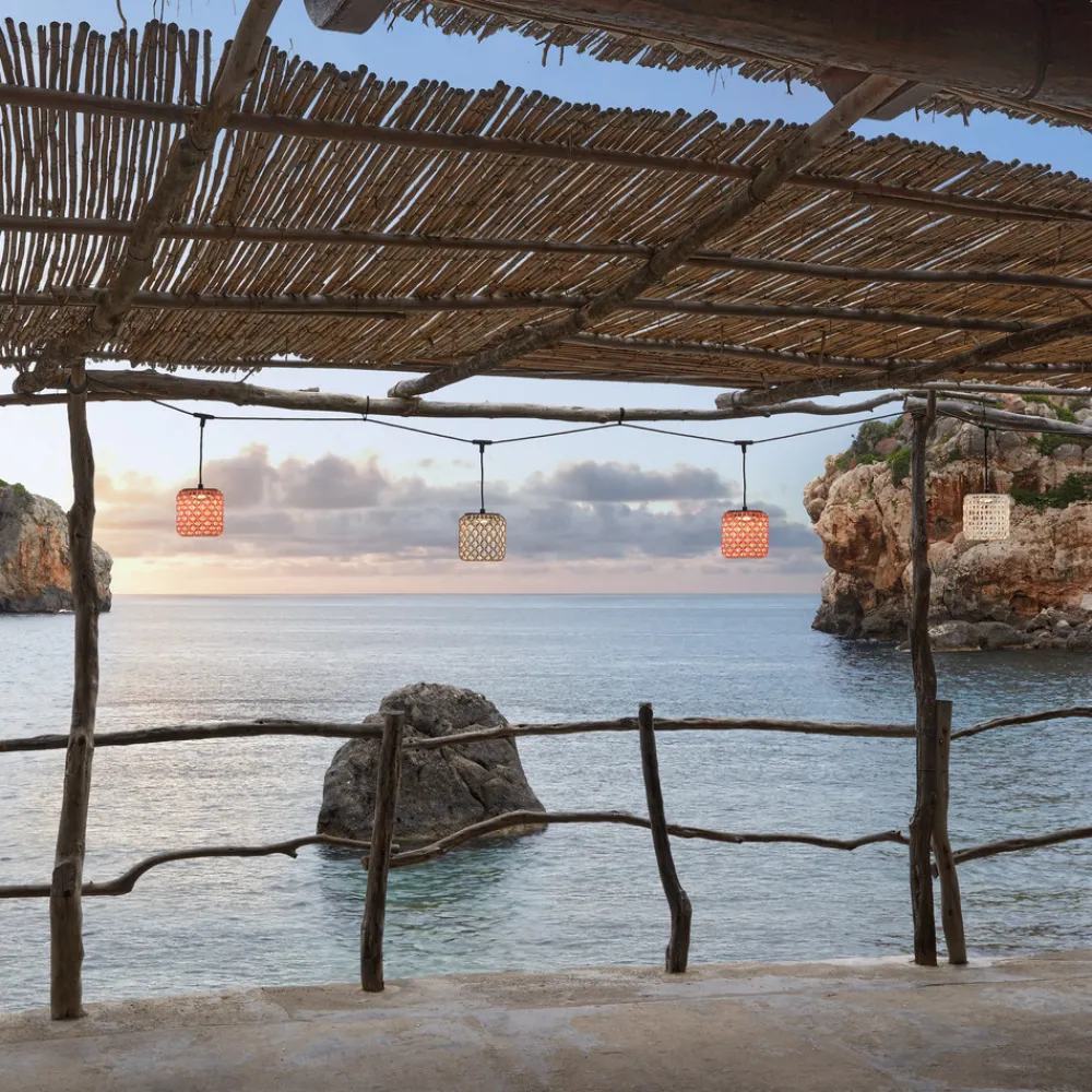 Fire pendler på én ledning: «Chain of lights» Nans for utendørs brukModellen Nans S/16/4L er en helt spesiell pendelarmatur, fordi den faktisk er en blanding av en lyskjede og en pendelarmatur, der Nans ikke bare har én pendel, men fire. Med denne pendelkjeden kan uteområdet belyses på en spesielt raffinert og stilfull måte – enten det er på terrassen, på balkongen, under tak eller i det fri. Det eneste viktige er at det finnes en stikkontakt i nærheten som kan forsyne lampene med strøm. Nans er en modell fra huset Bover i Barcelona. Det er grunnleggeren Joana Bover selv som har designet denne lampeserien for utendørs bruk, og på den måten bringer hun stemningen fra hjembyen Barcelona og Middelhavet inn i hjemmene til mange andre.