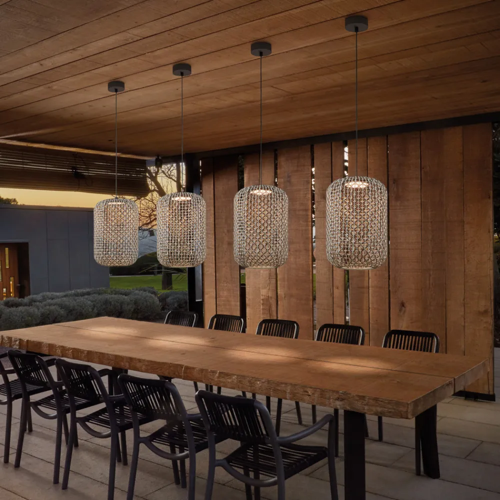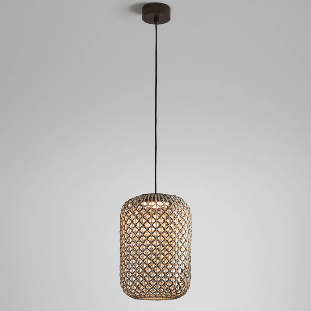 Designer utendørspendellampe Nans A med vevd skjermDesignfirmaet Bover, som holder til i Barcelona, legemliggjør middelhavsstilen med sine Made in Spain-produkter. Pendellampen Nans er designet for utendørs bruk, men kan også brukes innendørs. Den sylindriske lampeskjermen er vevd av syntetisk fiber, der tråder i ulike farger er flettet inn i hverandre. Pendellampen er triac-dimbar, men dimmeren er ikke inkludert.