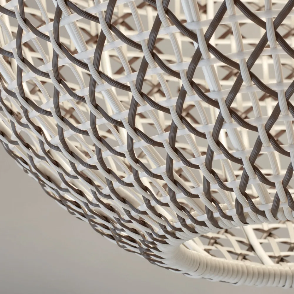 Designert utendørs taklampe Nans Sphere PF med vevd skjermDesignselskapet Bover, som holder til i Barcelona, legemliggjør middelhavsstilen med sine Made in Spain-produkter. Taklampen Nans Sphere er designet for utendørs bruk, men kan også brukes innendørs. Den kuleformede lampeskjermen er vevd av syntetisk fiber, og tråder i ulike farger er vevd sammen. Taklampen er triac-dimbar, men dimmeren er ikke inkludert.