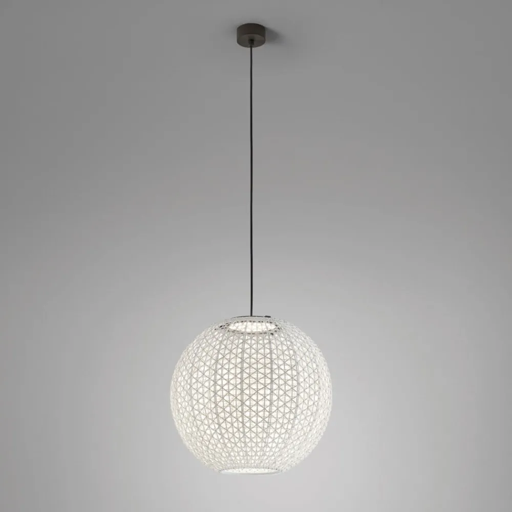 Designer utendørspendel Nans Sphere S med vevd skjermDesignfirmaet Bover, som holder til i Barcelona, legemliggjør middelhavsstilen med sine Made in Spain-produkter. Pendellampen Nans Sphere er designet for utendørs bruk, men kan også brukes innendørs. Den kuleformede lampeskjermen er vevd av syntetisk fiber, der tråder i ulike farger er flettet inn i hverandre. Pendellampen er triac-dimbar, men dimmeren er ikke inkludert.