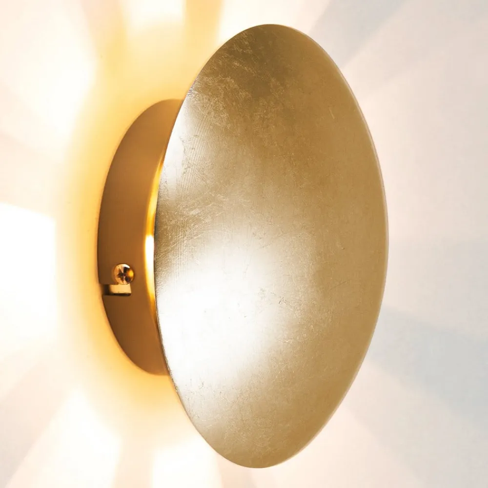 vegglampe Sunset – rund og gylden