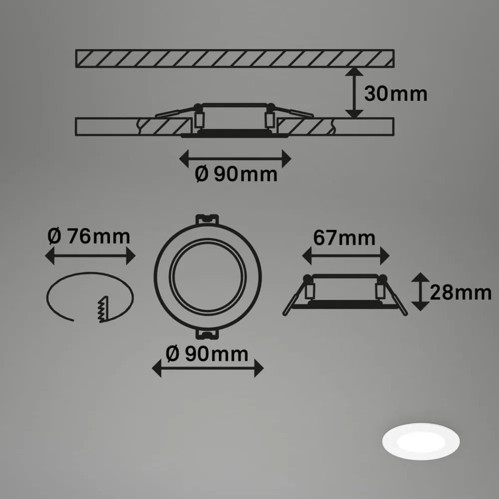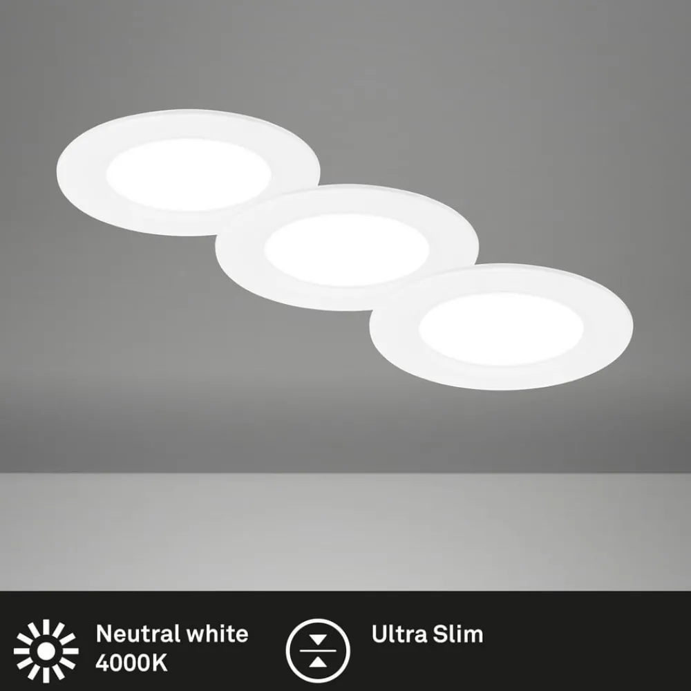 Briloner Innfellingslampe Jeft, Ø 9 cm, hvit, sett med 3 stk, av/på, fast| Downlights