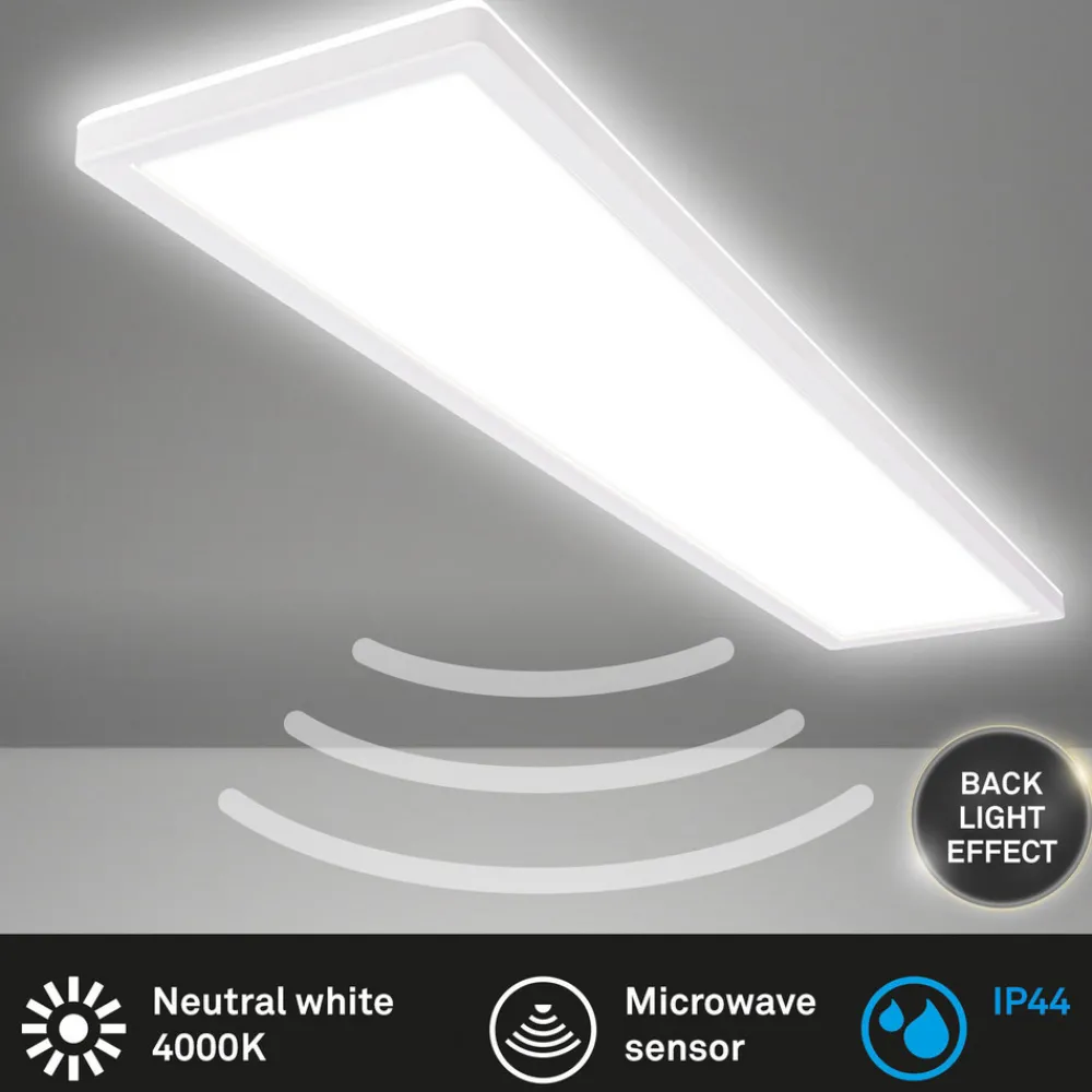 Briloner Move LED-panel, sensor, 98 x 20 cm, IP44, plast, hvit Hot