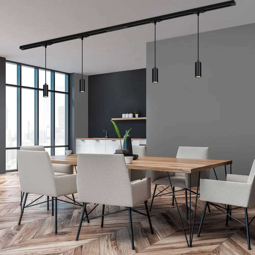 RAIL 230 V skinnesystem, svart, 4 LED-pendler, lengde 1,5 m