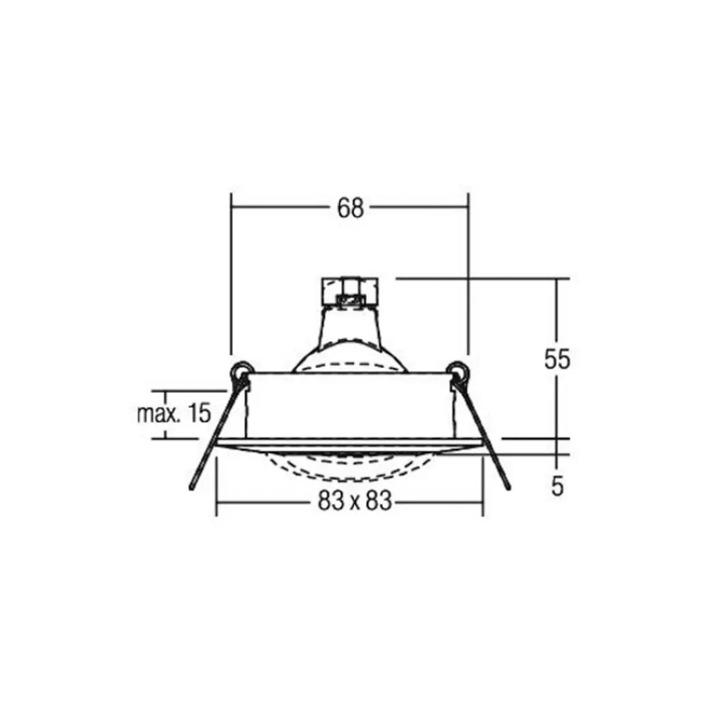 Firkantet innbyggingsspot Breena-S, svingbar 25° Den firkantede innbyggingsspotten Breena-S er laget av støpt aluminium og støpt sink i en kompakt form for rask og verktøyfri montering i taket. Spotlighten er utstyrt med en GU5,3-sokkel og kan utstyres med en lyskilde på opptil 50 W (tilbehør), og kan svinges 25° for å justere belysningen. Breena-S-innbyggingsspotlighten kan brukes i mange private og kommersielle områder – et forkoblingsutstyr er nødvendig for drift – egnet for LED retrofit-lamper med GU5,3-sokkel – inkl. stikkontakt med 30 cm tilførselskabel – kan ikke brukes i monteringsbokser – uten deksel med varmeisolerende materiale – uten deksel – uten snapring