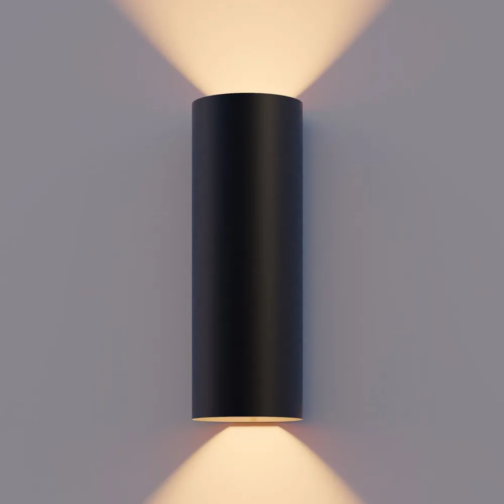 Calex LED utendørs LED-vegglampe Rund, opp/ned, høyde 23 cm, svart| Kommersiell Utebelysning