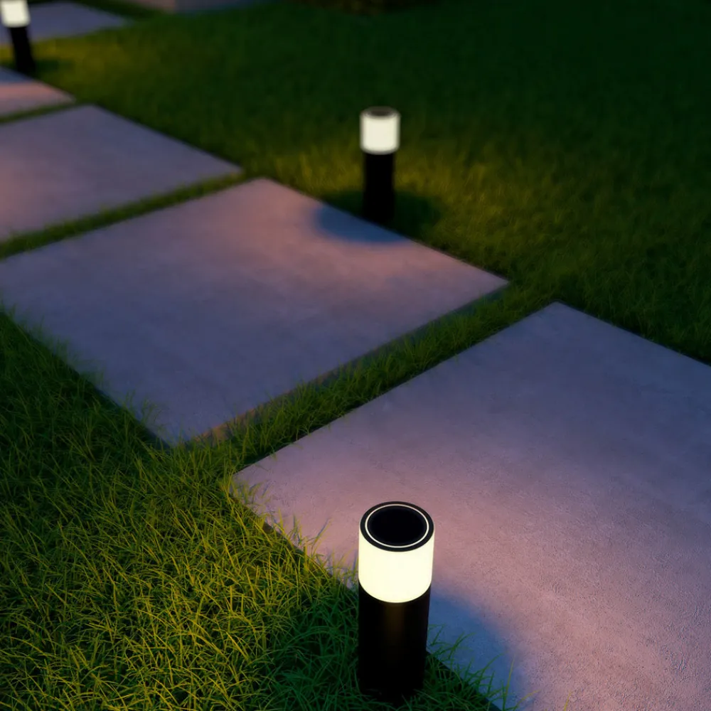 Smart styring: Smart Outdoor Gardenpost LED-sokkellampe med CCT- og RGB-funksjon, dimbar, inkl. jordspyd En Calex Smart Outdoor Link Bluetooth Mesh Gateway er nødvendig for intelligent lysstyring av Smart Outdoor Gardenpost LED-sokkellampen (se tilbehør). Gatewayen kobles til via WLAN, så et WLAN-nettverk må være tilgjengelig. Forbindelsen til lyset opprettes deretter via Bluetooth. Når den er satt opp, kan alle funksjoner enkelt styres ved hjelp av den gratis appen. I tillegg til ulike nyanser av hvitt (2700 K – 6500 K) kan man velge mellom mer enn 100 andre lysfarger, og lysintensiteten kan også dimmes trinnløst. Det er også mulig å styre med stemmekommandoer, og timer og forhåndsdefinerte lysscener er også tilgjengelig. Smart Outdoor Gardenpost kan installeres på bakkenivå eller brukes som lampe med jordspyd, da et jordspyd er inkludert i leveransen. Høyden kan også varieres, ettersom midtsylinderen ikke trenger å settes inn. Oppsummert kan den beskrives som en fleksibel LED-gatelampe med moderne design både når det gjelder utseende og teknologi. Tekniske egenskaper/kompatibilitet: – Kan styres via Calex-appen (gratis for Android og iOS) – Over 100 lysfarger og justerbart hvitt lys: varmhvit (2 700 K) – dagslys (6.500 K) – Timer og forhåndsinnstilte scener kan stilles inn via appen – Stemmestyring mulig med Amazon Alexa, Google Assistant og Siri Shortcuts – Dimbar via app eller stemmekommando Merk: En Calex Smart Outdoor Link Bluetooth Mesh Gateway (se tilbehør) og et eksisterende Wi-Fi-nettverk er nødvendig for intelligent lysstyring.