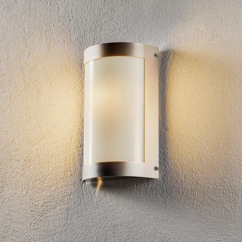 Utendørs vegglampe Marco3 i rustfritt stål med satinert front