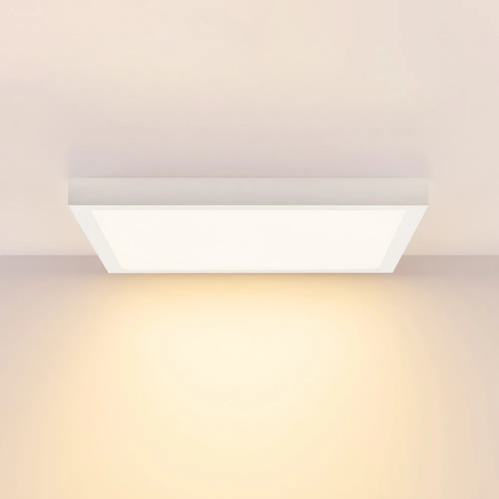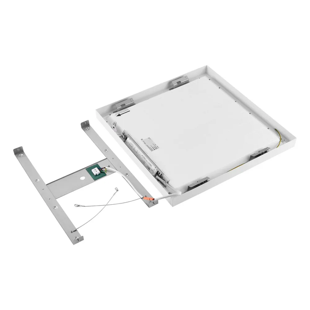 PRO OFFICE SANO kantet LED-panel for takmontering – med CCT-bryter, dimbar PRO OFFICE SANO LED-panel med hvit, rektangulær aluminiumsramme og mikroprismatisk avskjerming er ideelt for arbeids- og allmennbelysning i kontorer. Takket være svært god avblending, ekstern dimbarhet, valgbar lysfarge og ukomplisert installasjon er PRO OFFICE SANO panelet spesielt allsidig – Oppussingsløsning for T5 / T8 rasterlamper – Ingen overmaling nødvendig takket være tildekking av gammel installasjon – Enkel installasjon takket være plug-in-tilkobling, sikkerhetskabler og monteringsbrakett – Valgbar lysfarge før idriftsettelse: 3.000 K / 4 000 K – Eksternt dimbar (forkantfasestyring, bakkantfasestyring) – Nødstrømkompatibel [176-280V/DC EOFI: 95 %] – Egnet for skjermarbeidsplasser i henhold til EN 12464-1 BAP65 [L65=3000cd/m²]