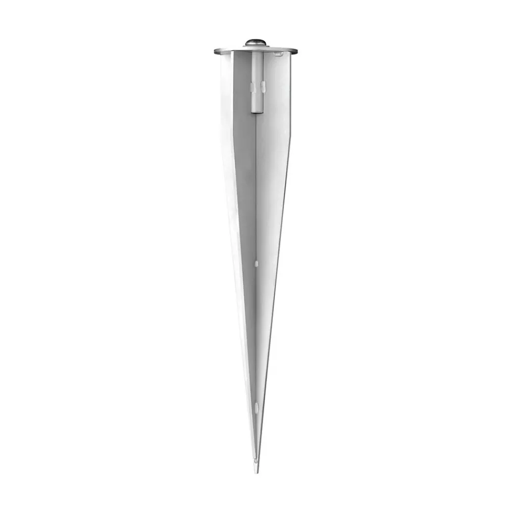 Jordspyd 93000 for utendørs spots fra dot-spot Dette jordspydet i rustfritt stål brukes til å stabilisere spotlights og forankre dem sikkert i bakken. Den har en M6-skrue og en låseskive.