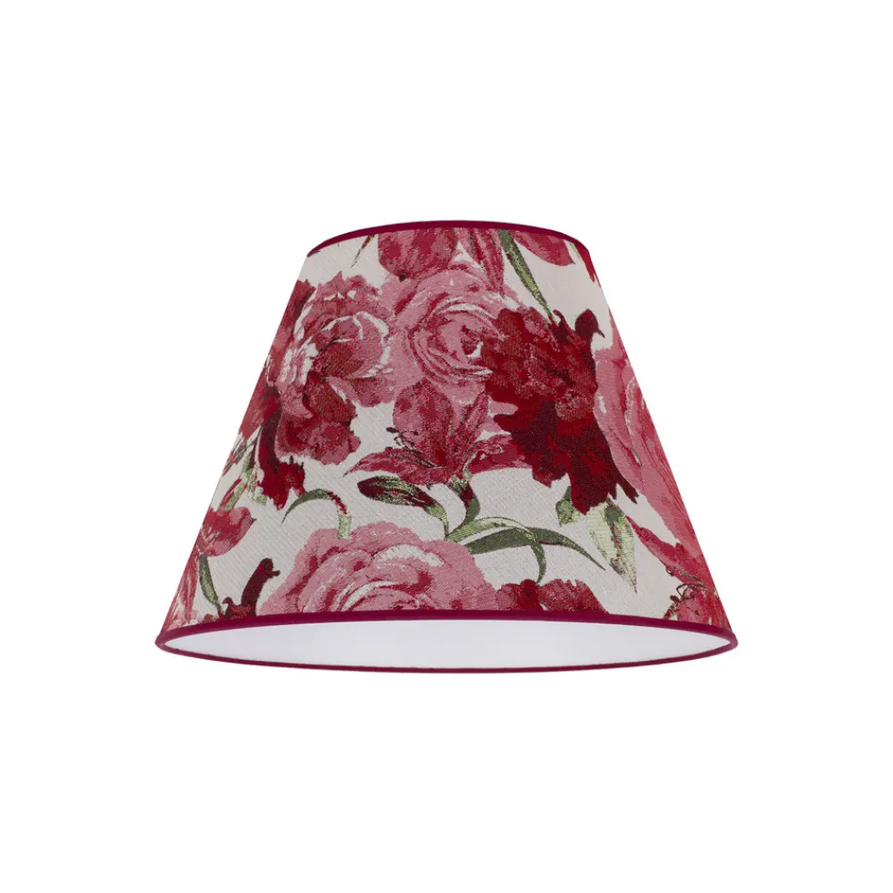 Lampeskjermen Sofia imponerer med sitt kunstneriske blomstermønster i en kraftig rød nyanse, som gir ethvert rom et elegant preg. Lampeskjermen er laget av tekstil av høy kvalitet og har ikke bare et tiltalende utseende, men også en behagelig lysspredning som skaper en varm og innbydende atmosfære.